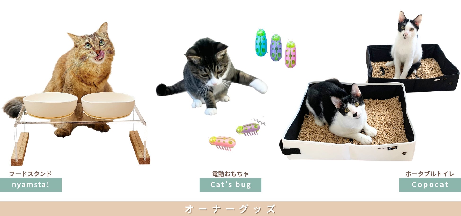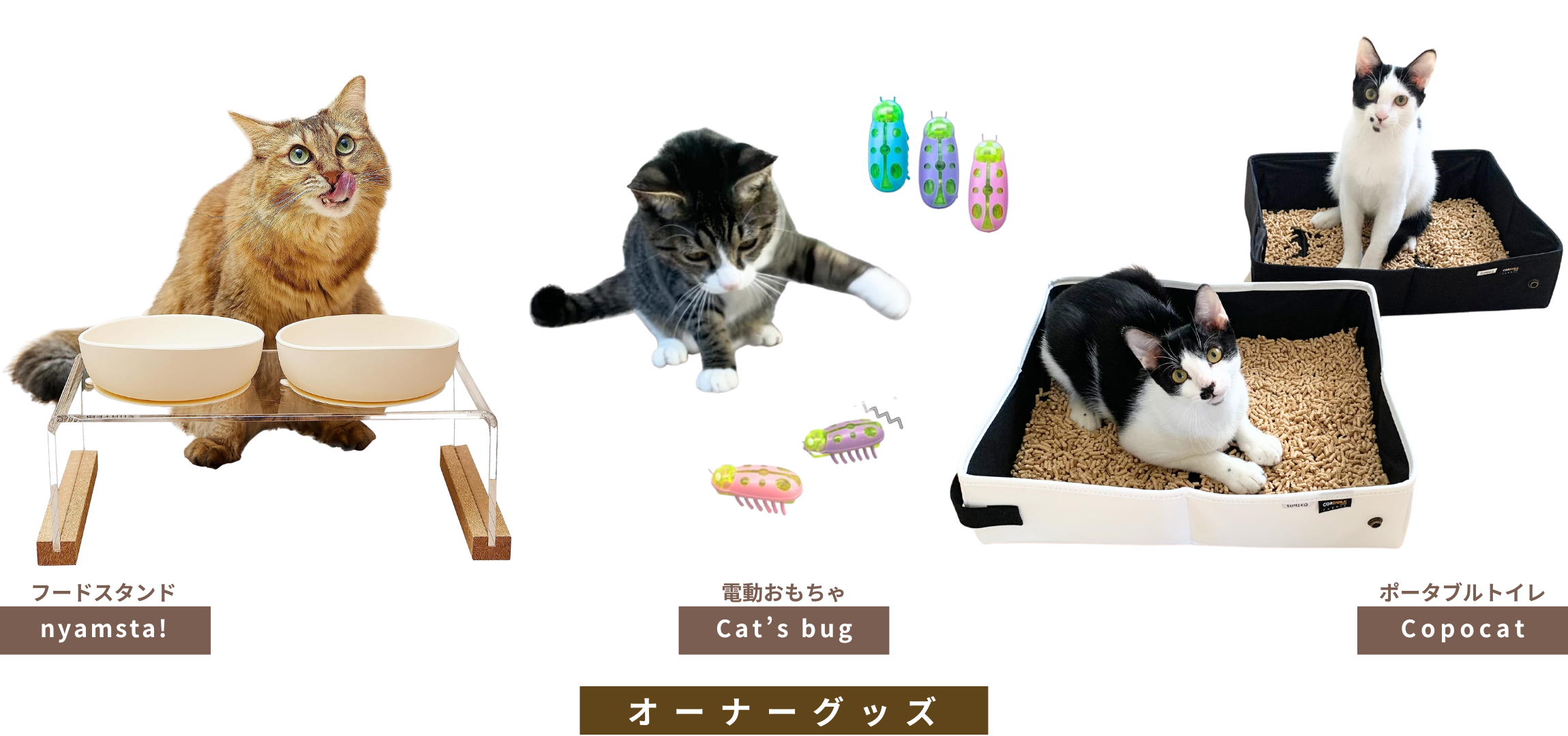 キャットタワーからおもちゃ、食器、さらにはポータブルトイレなどの防災用品まで幅広いラインナップをご用意しております。