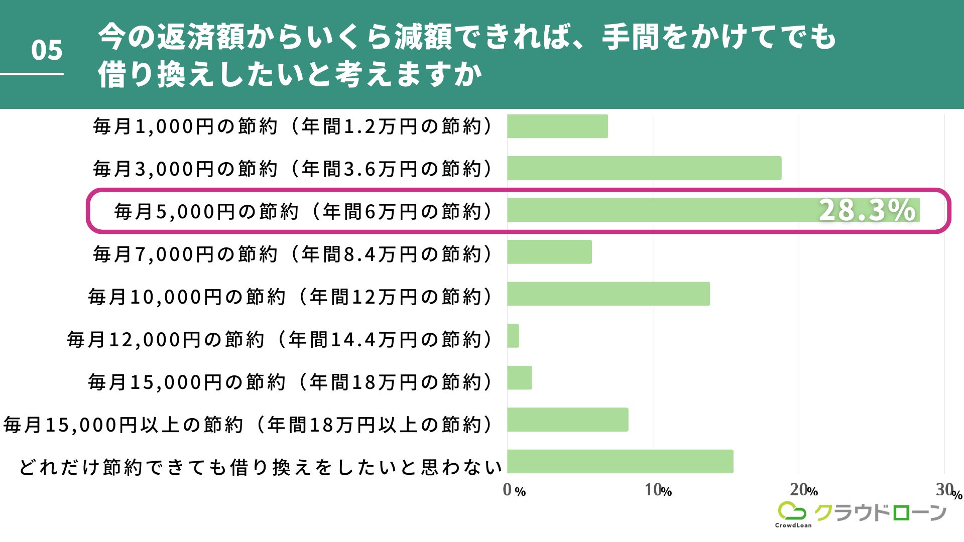 毎月の返済額から5,000円の節約(年間6万円の節約) 28.3%