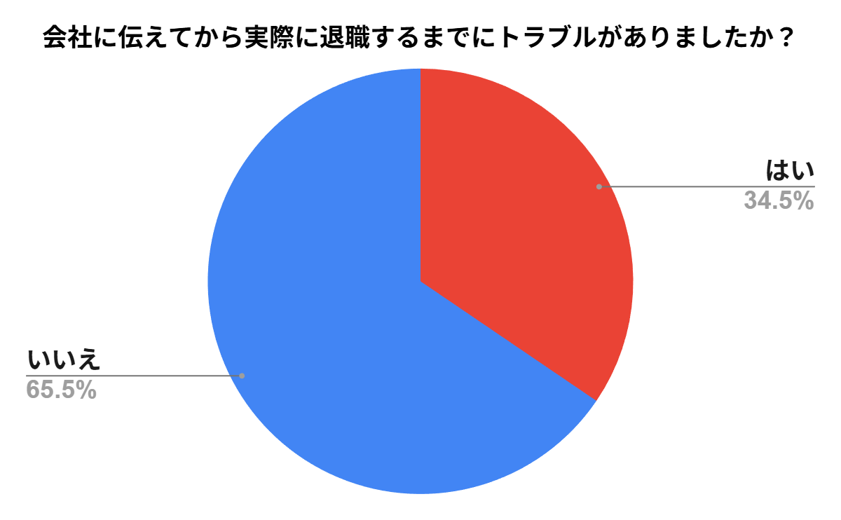 「会社に伝えてから実際に退職するまでにトラブルがありましたか?」という質問では、