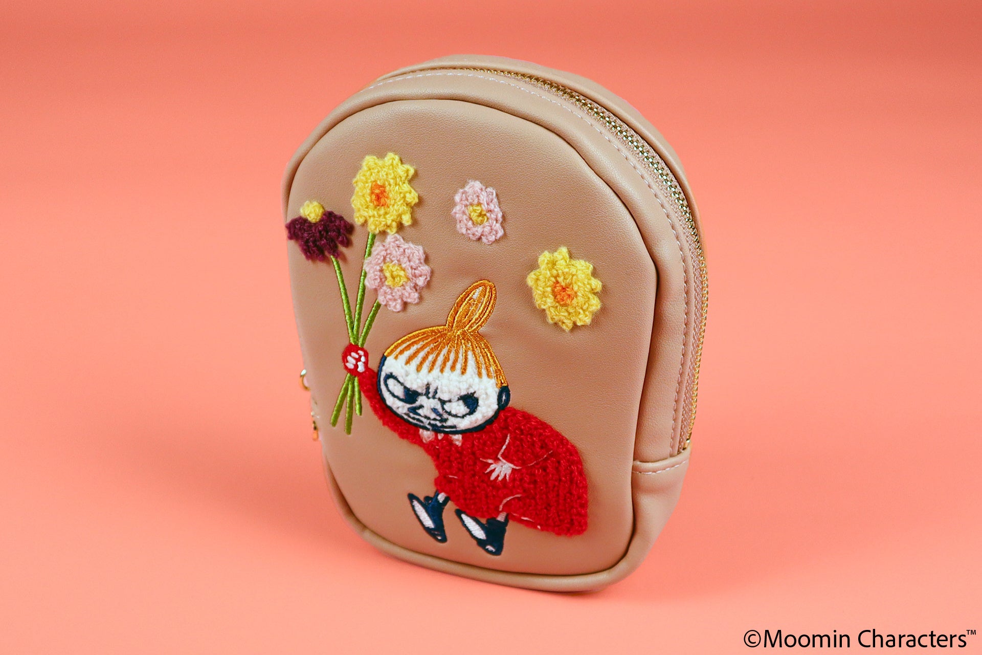 リップやアクセサリーなどの小物類をすっきり収納できる、使い勝手の良いコンパクトなサイズが魅力のミニポーチ。持ち運びしやすい大きさと程よい収納力で、バッグの中もすっきり整理できます。リトルミイのアートの一部がもこもこのサガラ刺繍になっていて存在感も抜群です。