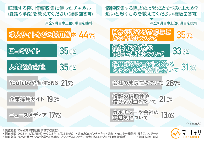 先程の調査結果で、転職の際の情報収集手段や、情報収集の際の悩みなどが明らかになりました。