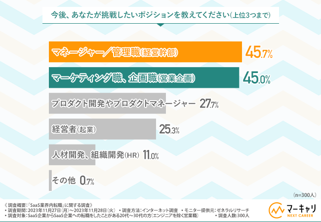 先程の調査結果で、SaaS業界にとどまった理由として『市場価値が高まると感じたため』という声が多いことが分かりましたが、今後どのようなポジションを目指したいと考えているのでしょうか。