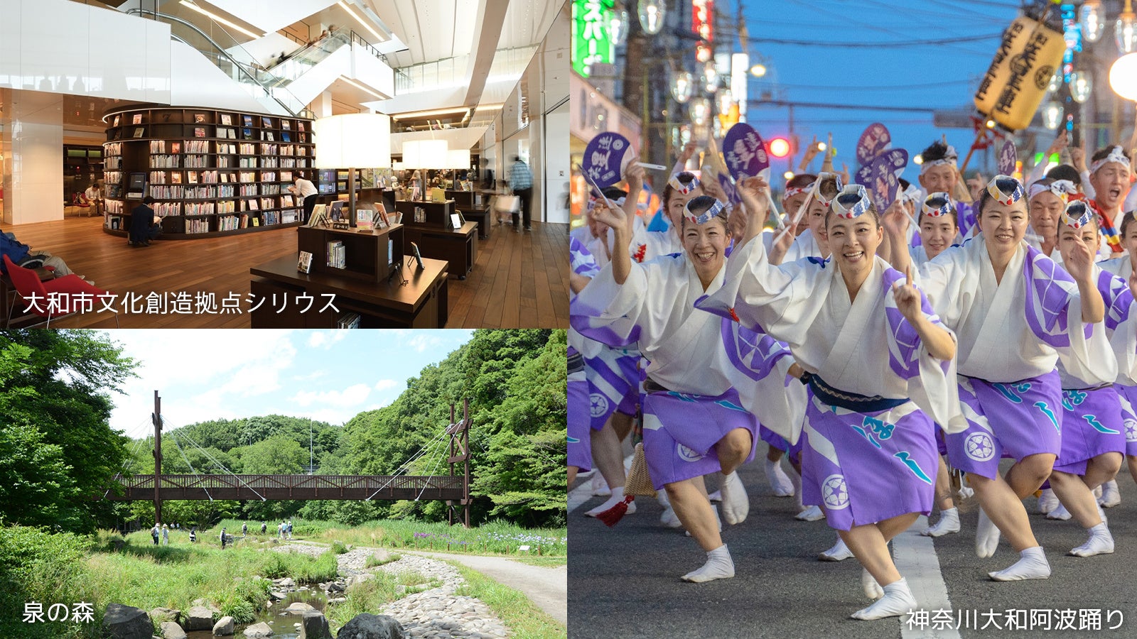 芸術文化ホール、図書館や屋内こども広場等の人気の施設が複合した文化創造拠点シリウス、広大な敷地の大和ゆとりの森など、市内外の幅広い世代の方に愛される交流・憩いの場所となる公共施設がそろっています。