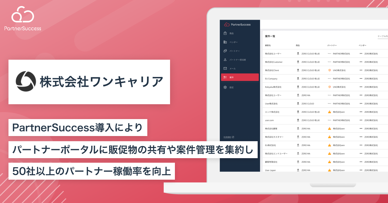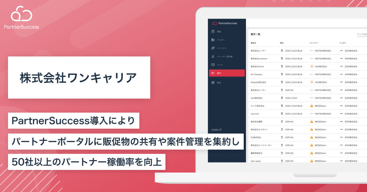【パートナーサクセス導入事例】株式会社ワンキャリア、代理店連携管理クラウド「PartnerSuccess」導入