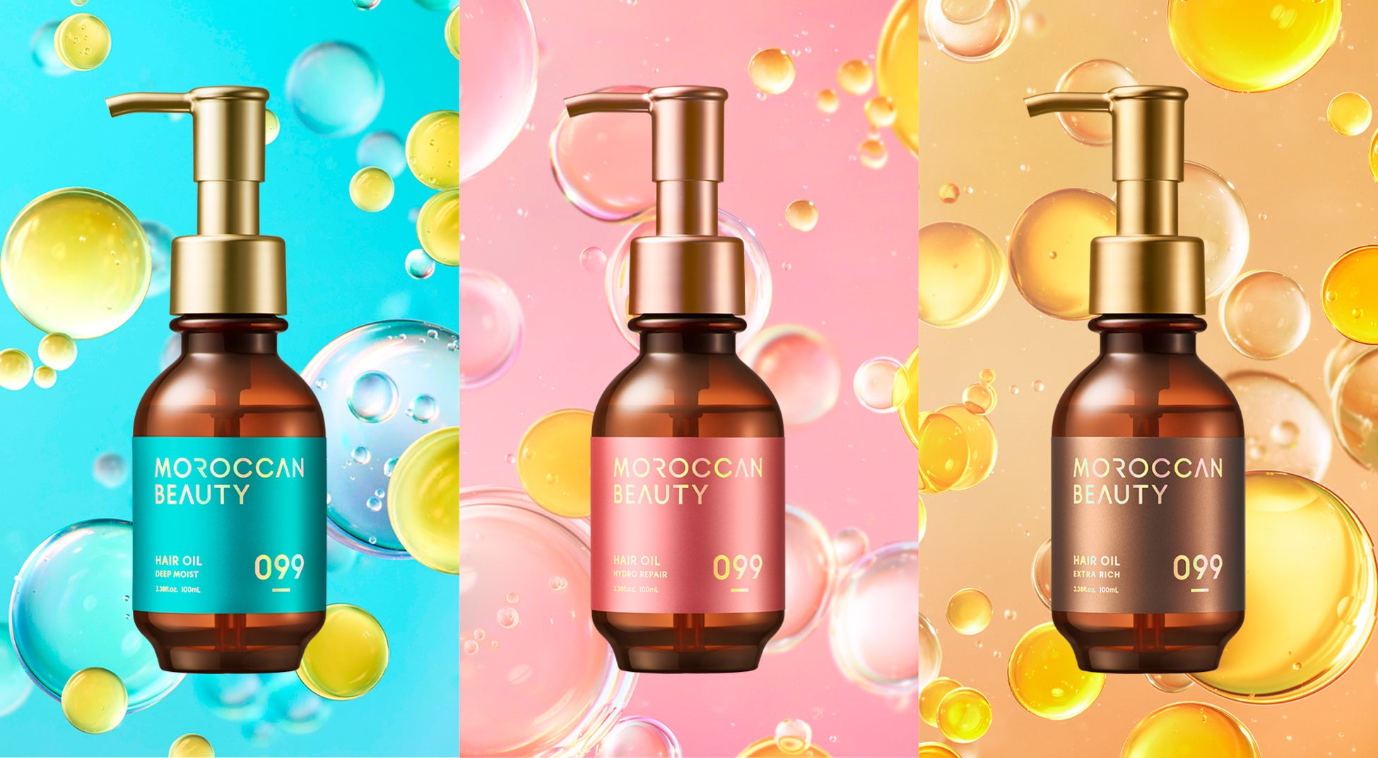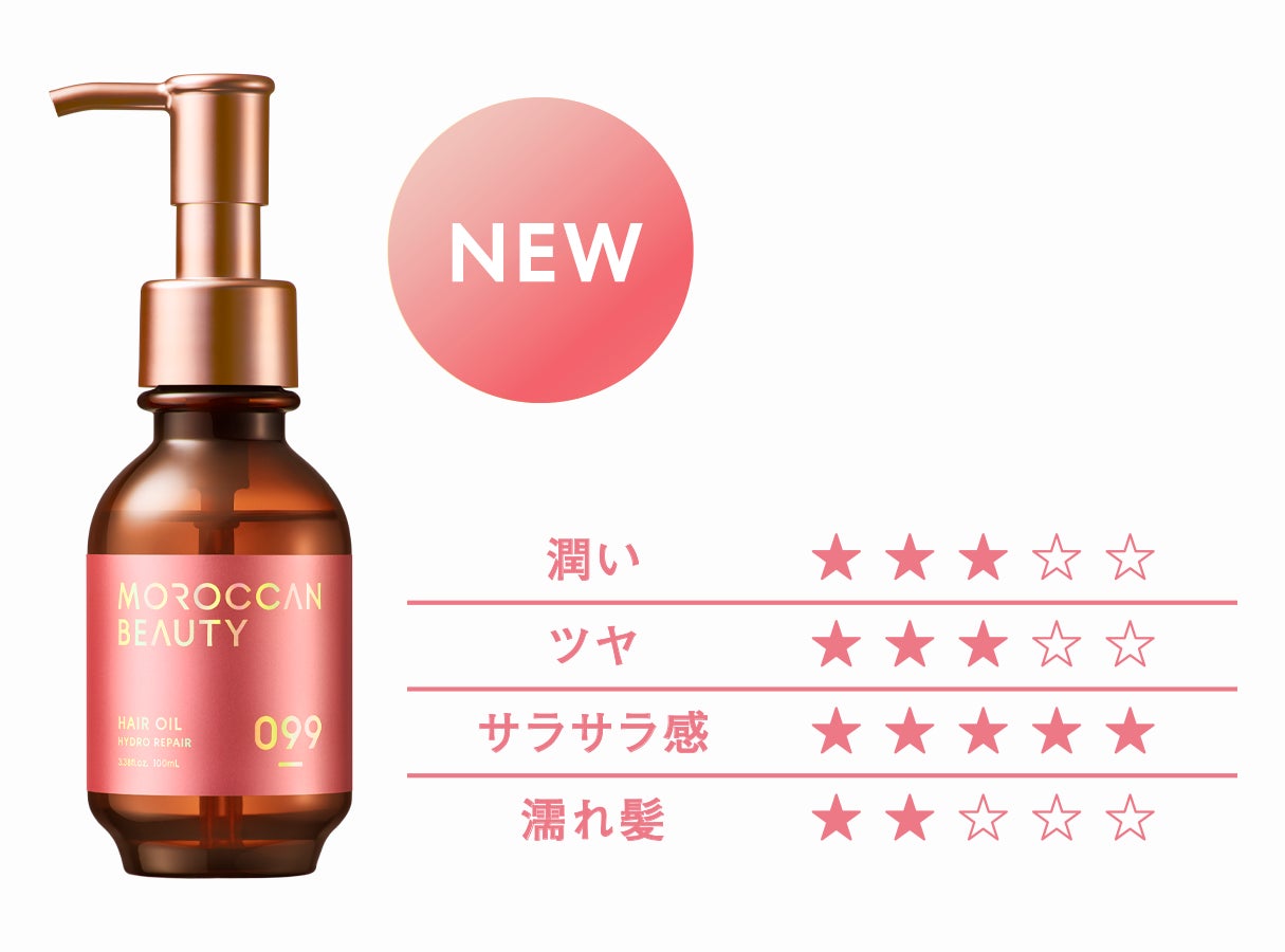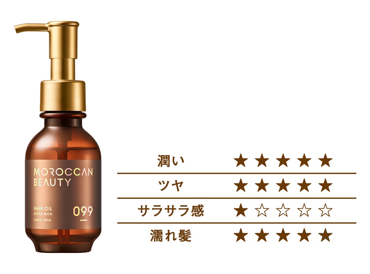 モロッコ産のアルガンオイル*¹はじめ、厳選した美髪成分*⁶をリッチに配合したモロッカングロス処方をベースに、髪悩みや好みの仕上がりに合わせて選べる3種類のヘアオイルをラインアップ。