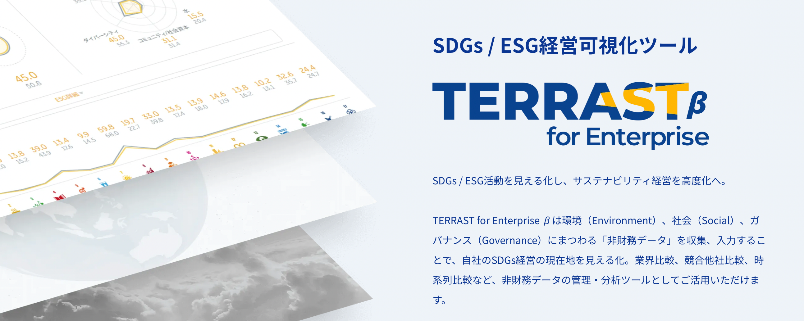 今回、上位掲載とならなかった企業であっても、多彩な「良い企業」はもちろんたくさん存在します。そんな企業たちが、「良い企業」として照らされ、あらゆるステークホルダーから固い絆で選ばれ続ける社会を、我々サステナブル・ラボは目指しています。そんな社会を実現するため、非財務情報開示や取り組みの高度化を進めるためのスマートツールである「TERRAST for Enterprise β(T4E)」(https://www.t4e.biz/)をサステナブル・ラボでは提供しています。IR部門の人員不足、またESG専門家が不在であっても、スマートかつクイックに自社のESG/SDGs診断、ESG見える化推進、ESG開示業務の半自動化が可能です。