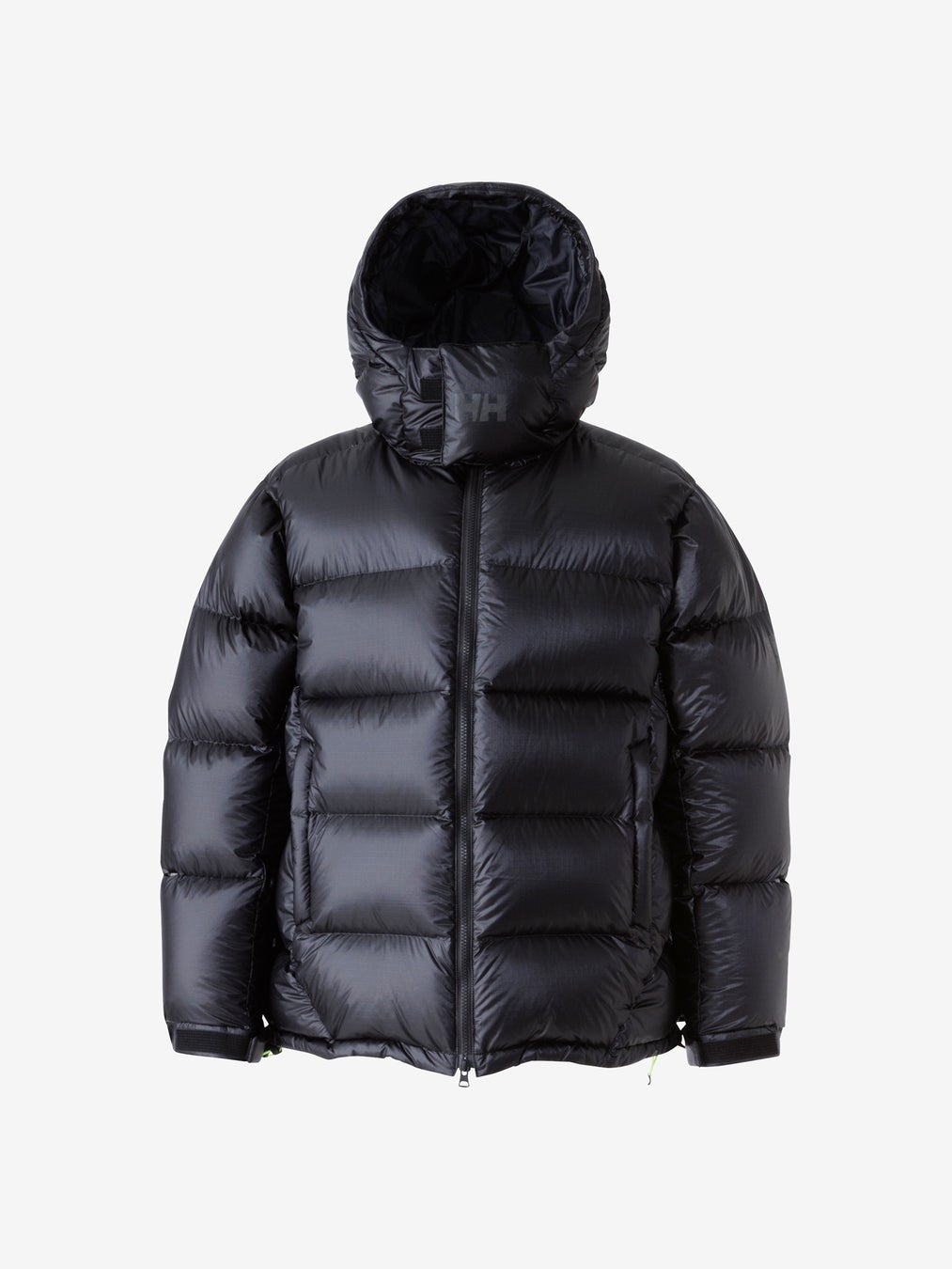 表地は、軽量かつ耐摩耗性に優れたPertex® Quantum Diamond Fuseを採用しました。900フィルパワーのダウンを約280g(Lサイズ)封入しており、軽量性と保温性を両立しました。高めに設計した襟元のフラップは、面ファスナーで締め込みができる仕様です。視認性を高めるため、後ろ裾にSOLAS条約(海上人命安全条約)に準じたリフレクトサイトのワッペンを配置しました。両袖には、濡れたグローブなどを簡易的に掛けられるDカン付きで、Dカンを使わないときは縫い目を利用したスリットにすっきりと収納可能です。スタッフサック付きで、携行にも重宝します。