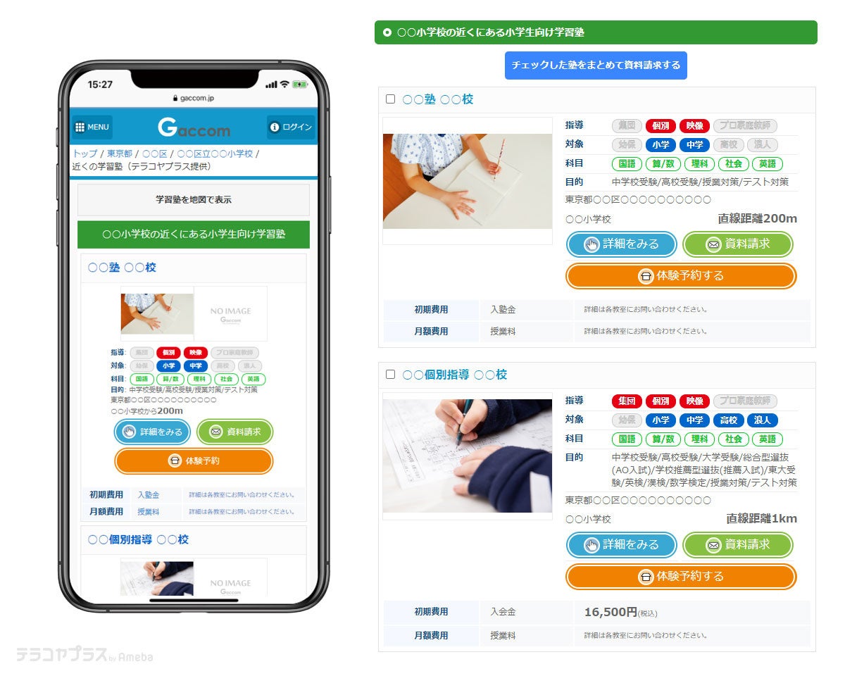 また、掲載されている塾を選択することで、テラコヤプラスのサイト内にてすぐに資料請求や体験予約をしていただくことも可能になりました。ガッコムのこれまでの教育情報と合わせて、お子さまの教育・学習方法の検討に、ぜひご利用ください。