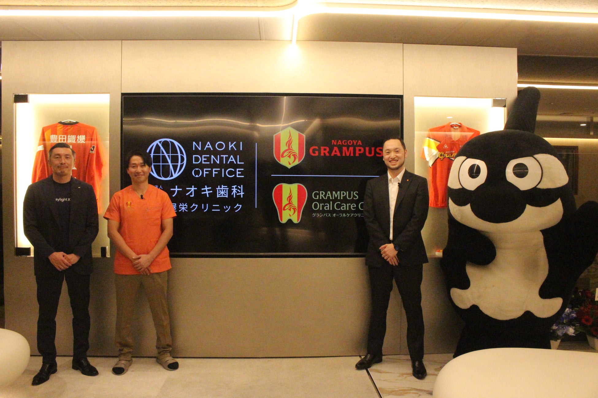 また、SCOグループは、これまで、「アントラーズオーラルケアクリニック」「セレッソオーラルケアクリニック」「アビスパオーラルケアクリニック」の3歯科医院を開院されており、このたび開院する「グランパスオーラルケアクリニック」は、Jリーグでは4クラブ目、東海地方では初となるJクラブと連携した歯科医院となります。