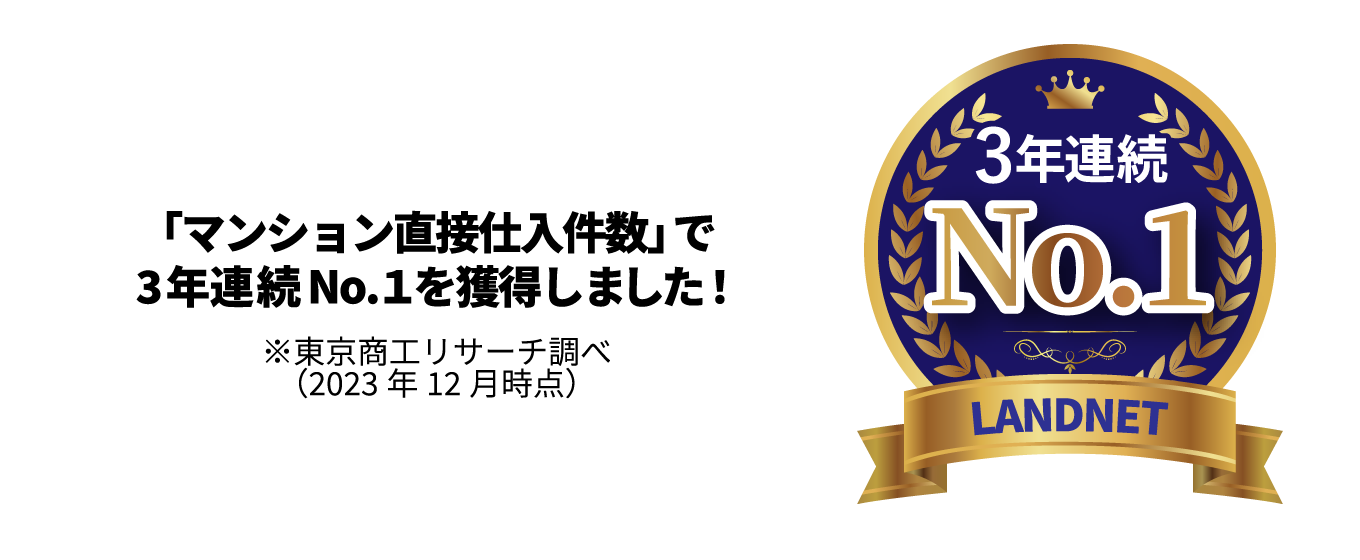 当社では先進的なDXの推進と、売主様一人ひとりのご要望を大切にする真摯な営業活動を継続することで、マンション直接仕入件数3年連続業界No.1を獲得することができました。