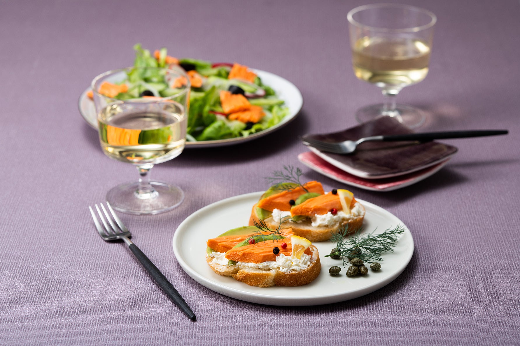 「サラダスティック スモークサーモン風味」は食べた瞬間、スモークの豊かな香りとサーモンをイメージした濃厚な旨味が口いっぱいに広がります。