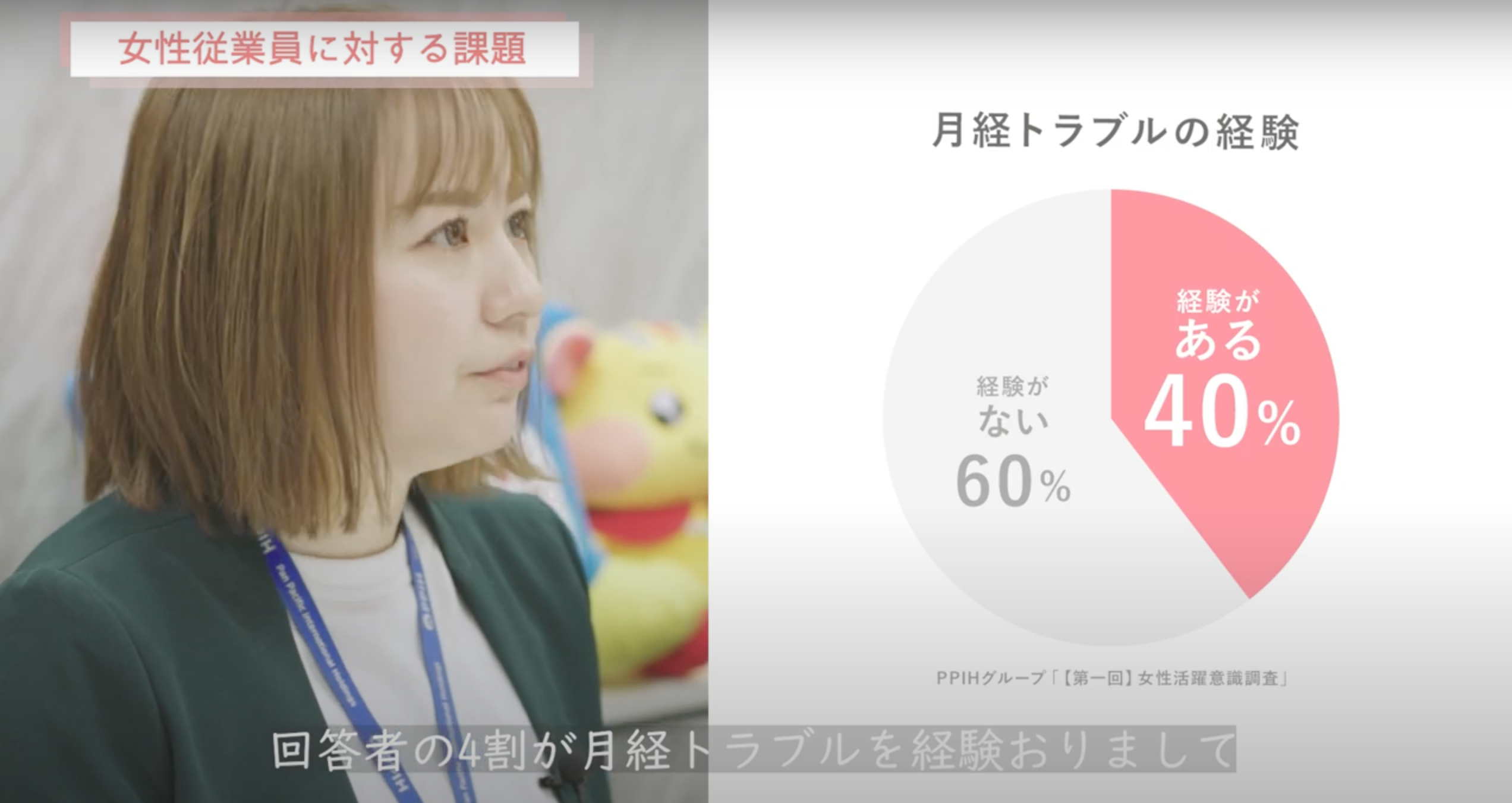 ・去年、女性社員向けに意識調査を行ったのですけれども、回答者の4割が月経トラブルを経験しておりまして、更に生理痛で休んだことのある方が2割もいたので、これは課題として重く受け止めておりました。(株式会社パン・パシフィック・インターナショナルホールディングス様)