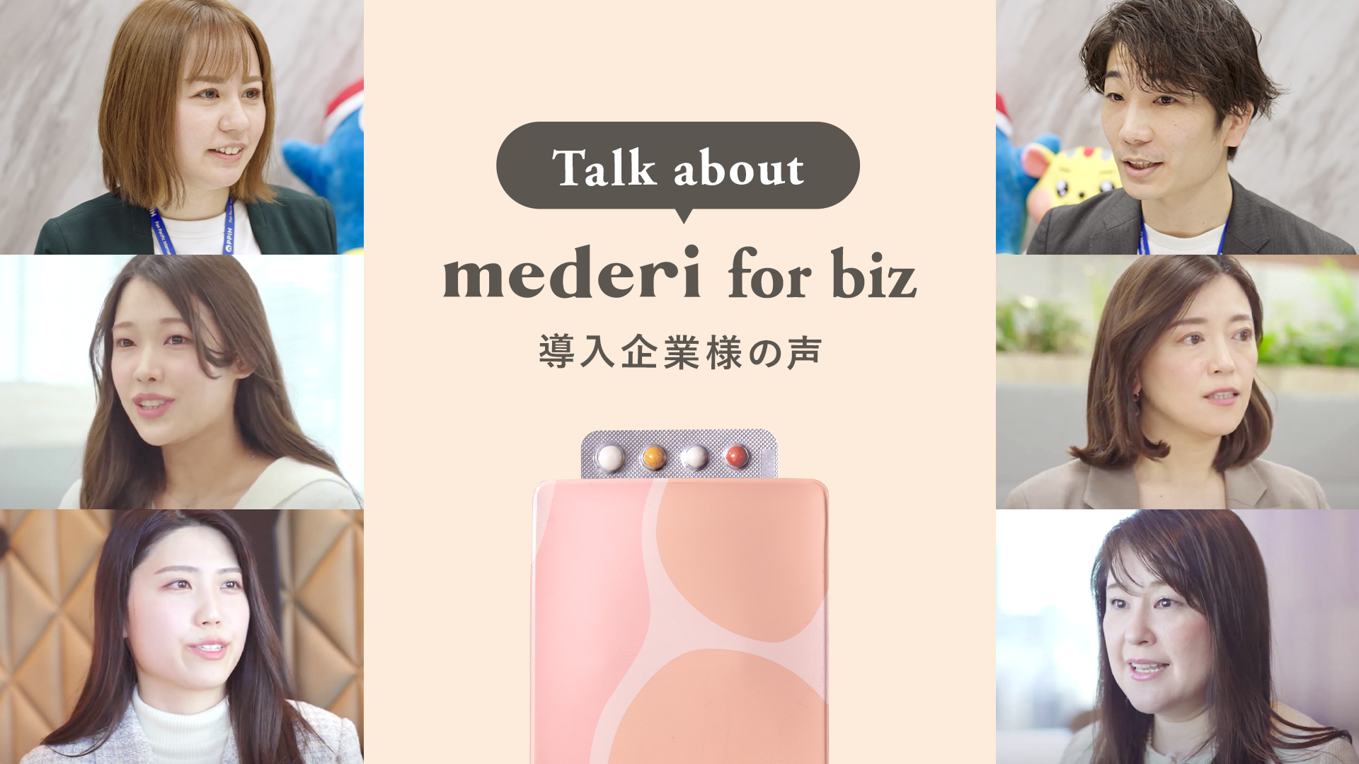 当社では、今後も多くの女性が活躍するとともに、ご自身の体とのことを知り、大切に、愛でられるような社会の実現に向けて、法人向け福利厚生サービス「mederi for biz」をはじめとしたサービスを通して女性の健康課題の解決をサポートしてまいります。