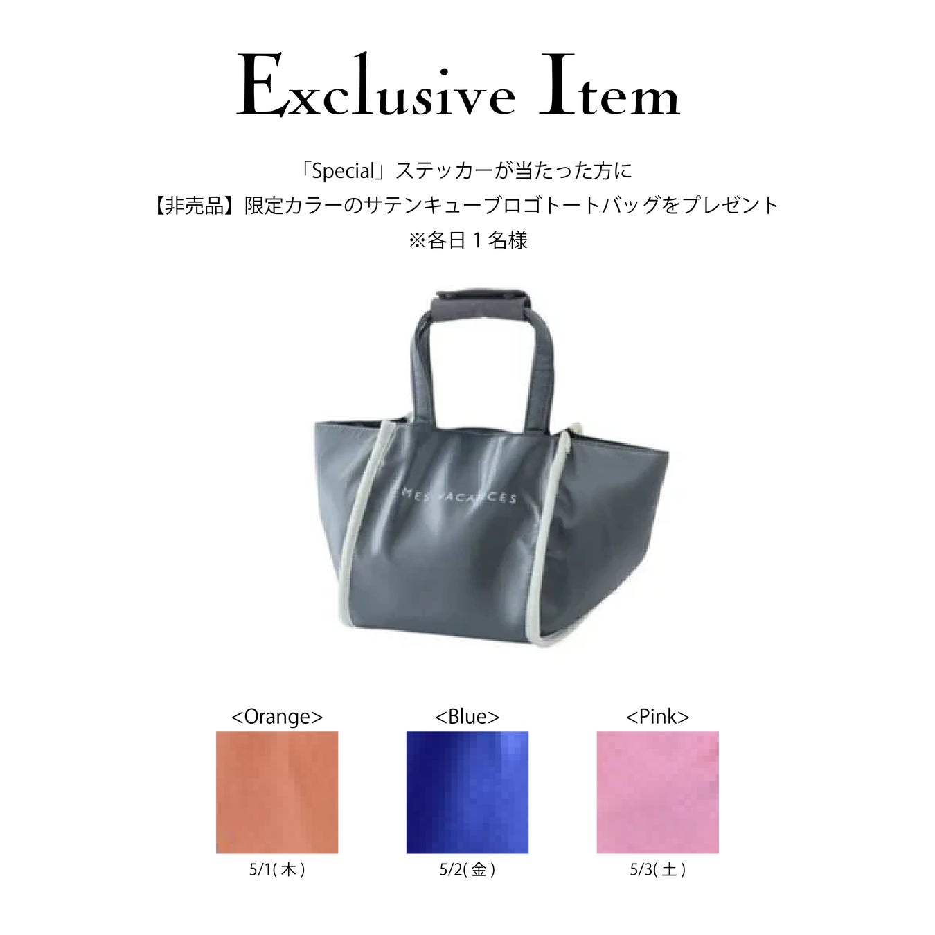 さらに「Special」ステッカーが出た方には、限定カラーのサテンキューブロゴトートバッグをその場でプレゼント!