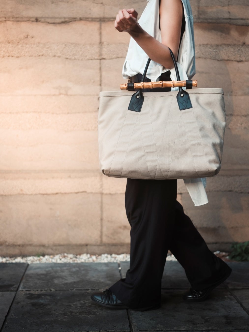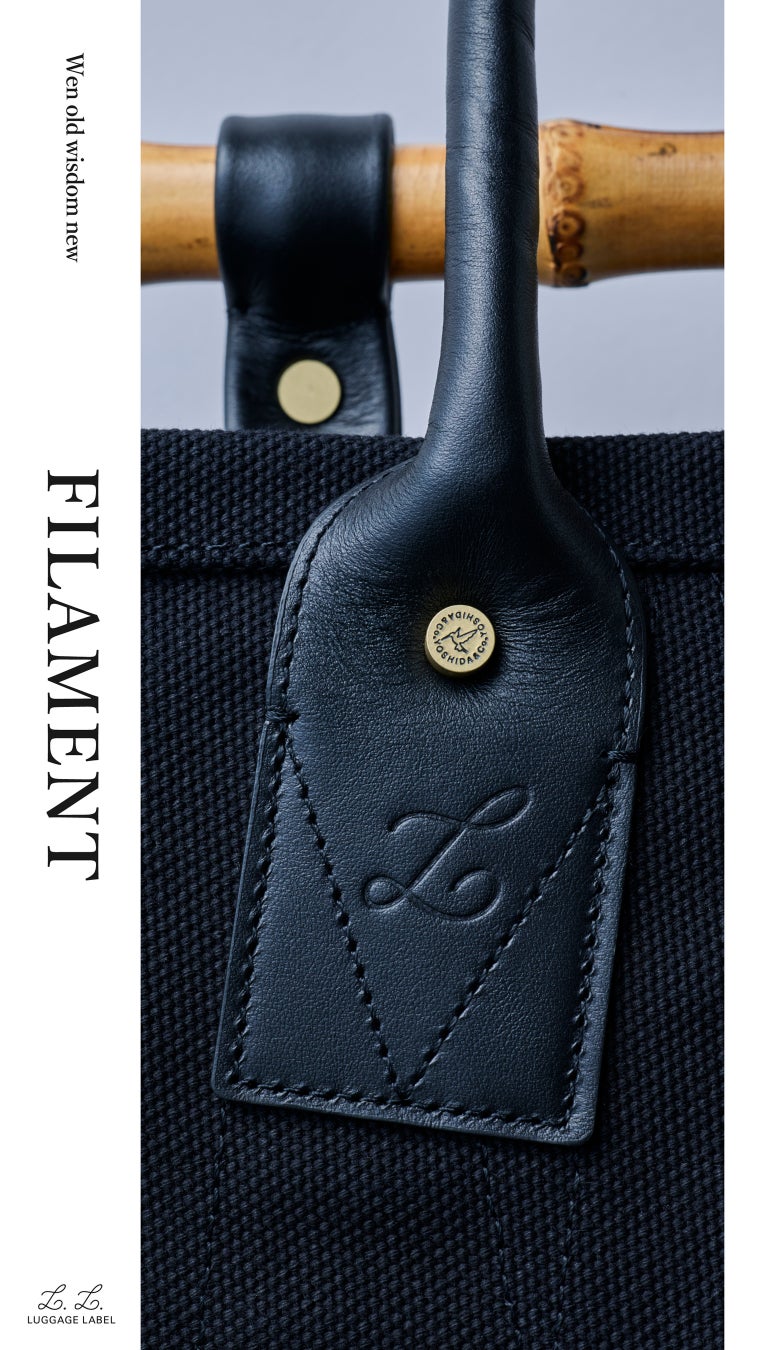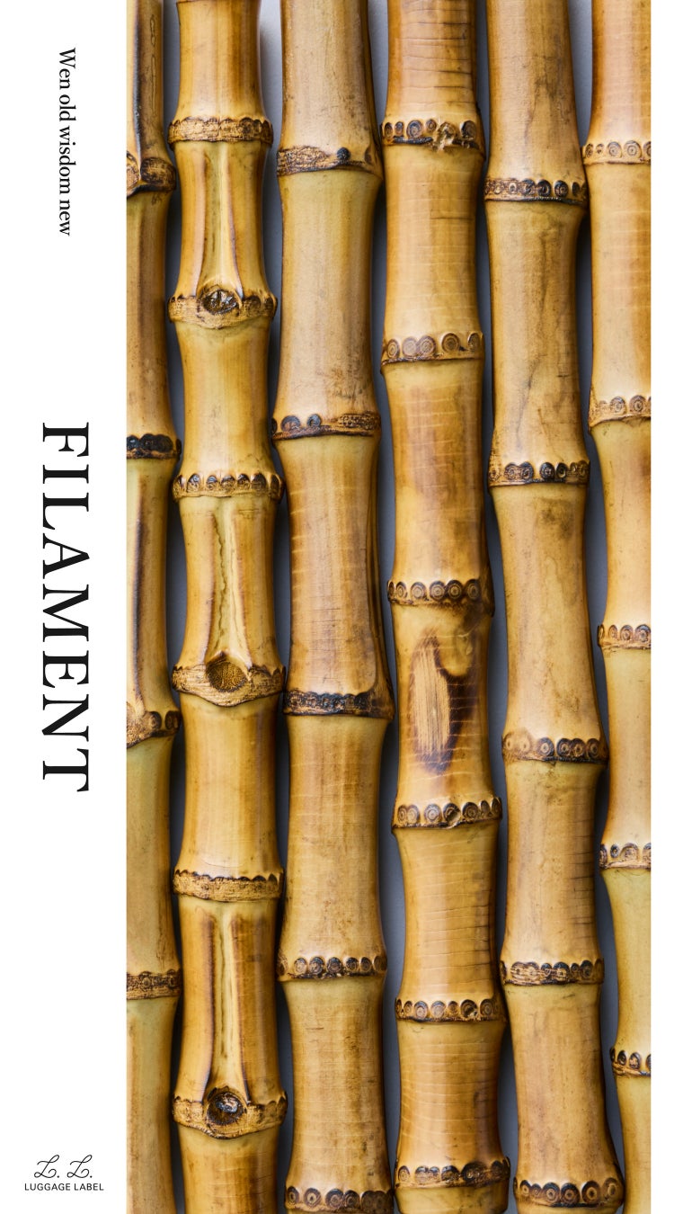 LUGGAGE LABELの最新作「FILAMENT」は、先人の知恵に学び、古くから日本人の暮らしに寄り添ってきた“竹”に着目したシリーズです。焼きを入れた竹のハンドルは、手に馴染みやすく美しいだけでなく、レザーと組み合わせることで、鞄の自重で口が自然に閉まる機能性も備えています。竹は、わずか一年で成木となるほどの生命力を持ち、古来より道具や建築資材として幅広く用いられてきた素材です。その強さとしなやかさを受け継ぎ、真鍮の金具や柔らかなレザーを組み合わせることで、日常に寄り添う現代の機能美を形にしました。自然の恵みと人の知恵を結ぶ、新しい時代の「ものづくり」を象徴するバッグシリーズです。