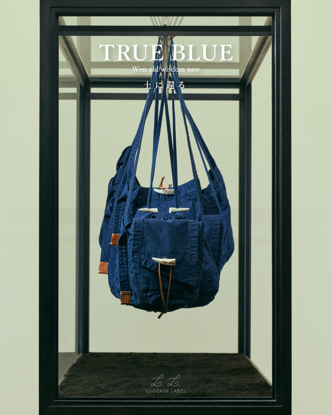日本には、古くから受け継がれてきた多様なものづくりの文化があります。「温故知新」の言葉のとおり、伝統の中には今を豊かにする知恵が息づいています。「TRUE BLUE」は、先人たちの叡知に学び、自然の恵みを素材として生まれたバッグです。麻糸や植物タンニンなめしの牛革、鹿のツノなど、すべてが自然由来の「土に還る」素材でつくられています。染色には、日本古来の技法「天然藍灰汁発酵建て」による天然藍を使用。染め師の手仕事によって何度も染めと乾燥を繰り返し、透明感のある深いブルーが生まれました。すべては自然から生まれ、自然とともにあり、時を重ねて美しく育つ。やがてまた自然へと還る。それが「TRUE BLUE」のものづくりです。