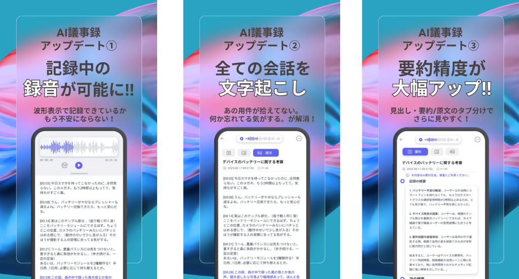 「ちゃんと録音できているか不安」「重要な発言を聞き逃した」「膨大な議事録から情報を探すのが大変」といった現場の声に応えた、実用性重視のアップデートとなっている。