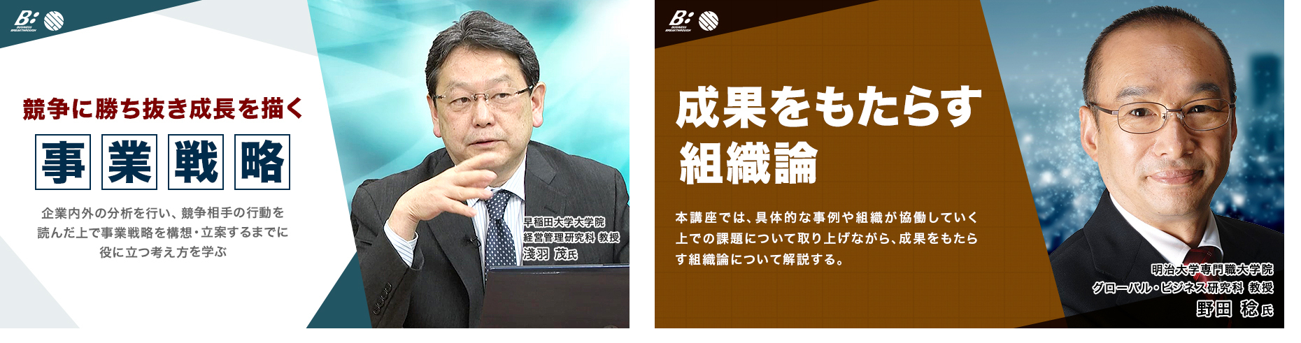 このような人材育成の課題解決のために、グローバル環境で活躍できる人材を育成し続けてきたBBTと連携し、企業が必要としている学習コンテンツの更なる拡充を図ることとしました。今回の連携では、BBTが保有する約10,000時間のビジネス映像コンテンツの中から、両社で議論を重ね、「経営戦略」領域をはじめとする84テーマを厳選して「経営人材育成アドバンストコース by BBT」として提供します。加えて、今後、実務を強化するMBA講座を中心に、デジタル技術やビジネス基本教養の映像講義も提供予定です。