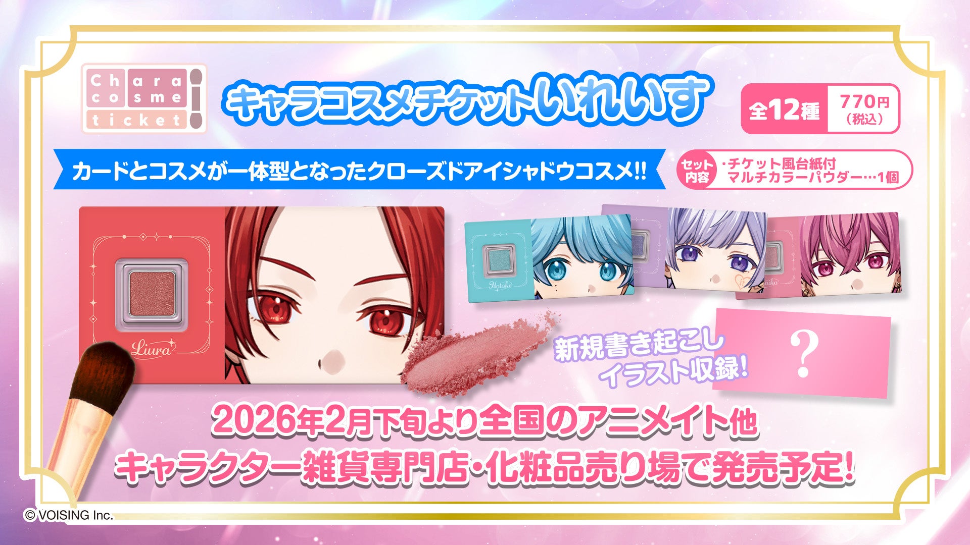 推しキャラの世界観をぎゅっと詰め込んだ、推し色をまとえるチケットサイズのランダムコスメ。台紙を開くとチケット風のデザインが楽しめます。新規書き下ろしイラスト6種を含めた全12種がラインナップ!メンバー直筆メッセージが収録されています。