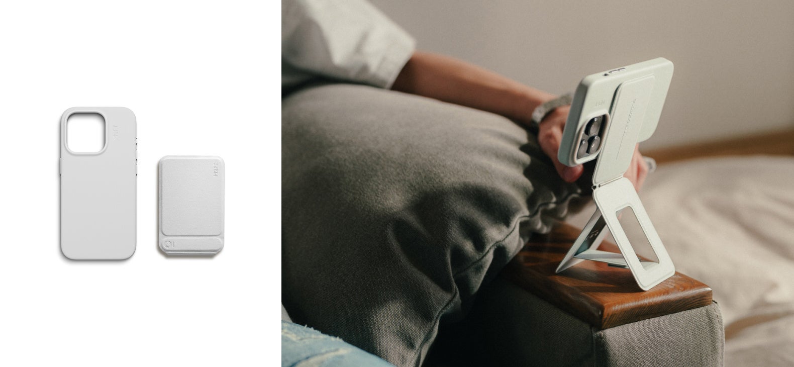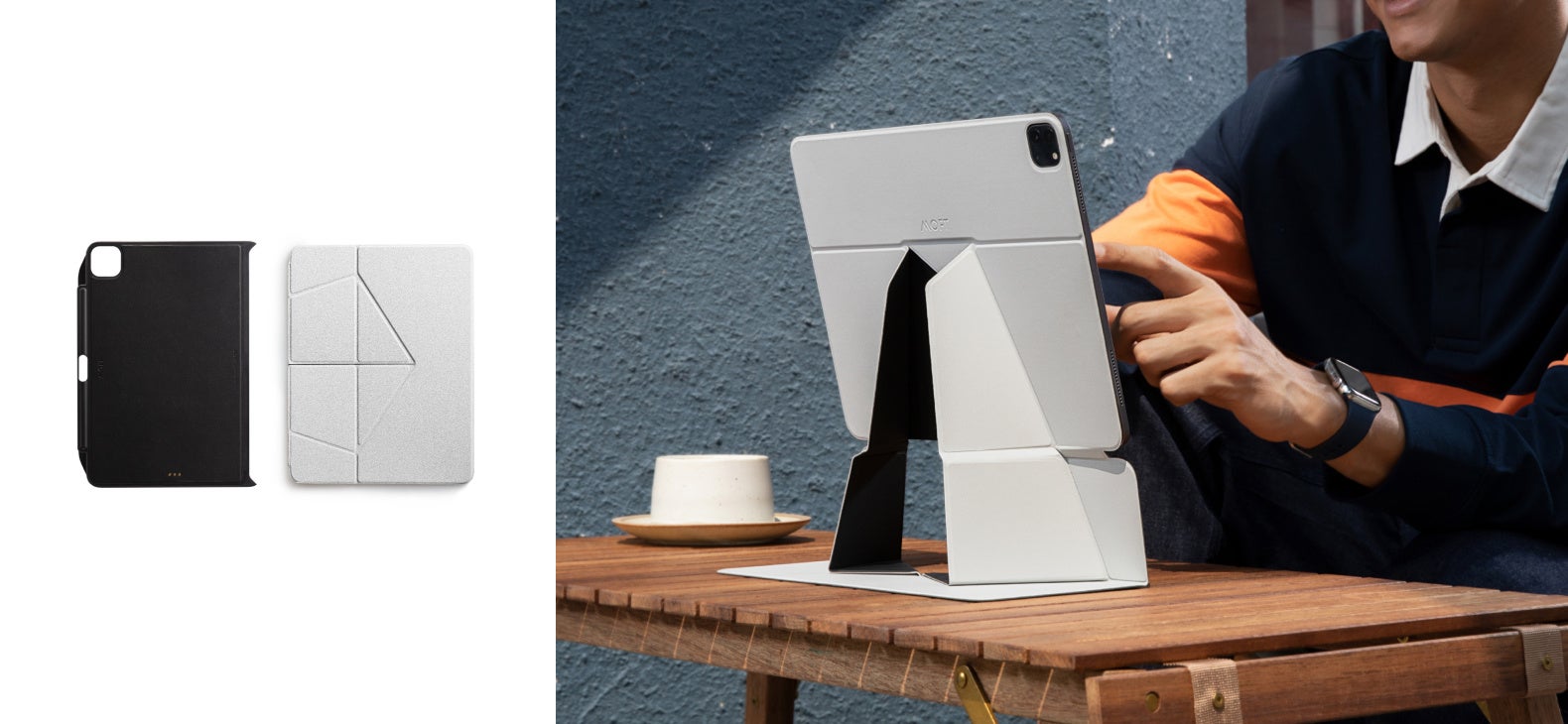 「デザイン界のオスカー」と称されるiFデザインアワードを受賞した七変化マルチスタンドと、高級感あふれるMOVAS™レザーケースのセットです。一瞬でセットアップできる快感と、肌のような優しい触感を楽しめます。