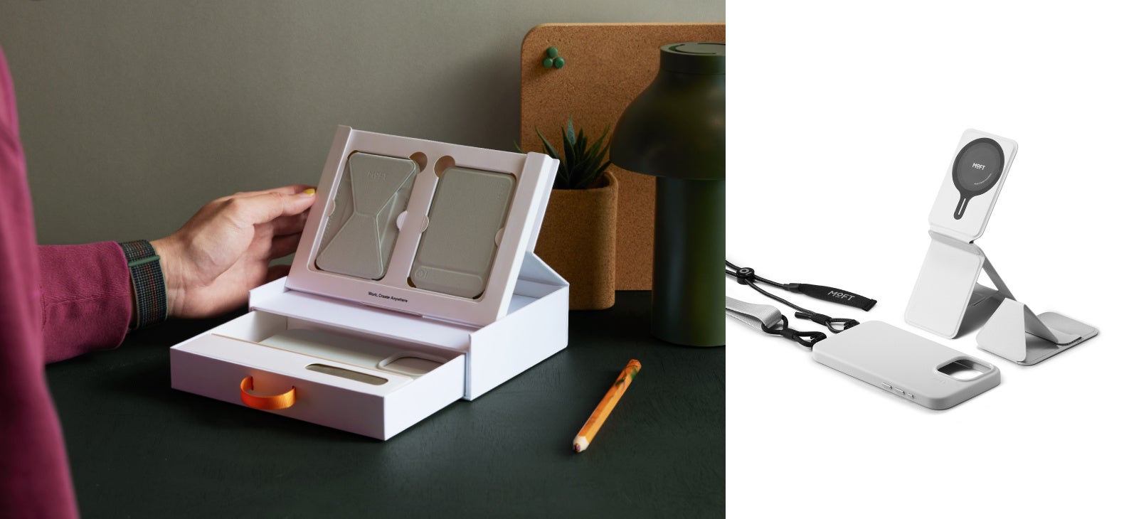通勤や外出から、動画鑑賞、家族写真の自撮りまで、全てをスマートに楽しめる4つのアクセサリーをまとめたGift Box。包装そのものが収納ケースに変身し、身の回りの物を思いのままにレイアウトできます。