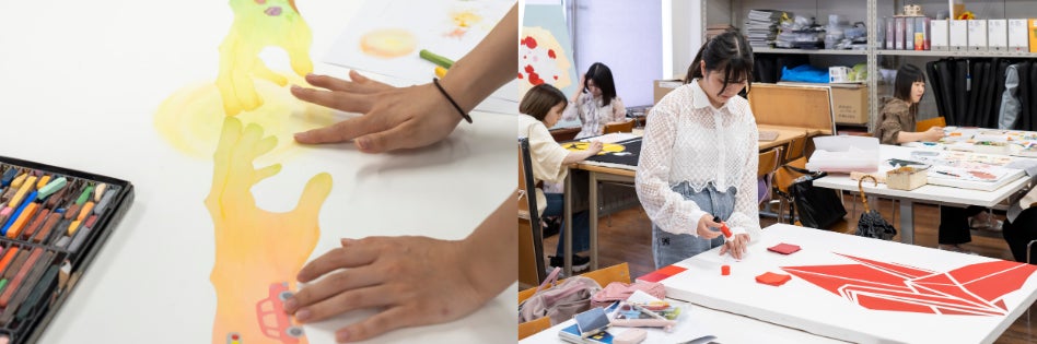 クリエイティブデザイン学科ビジュアルデザイン専攻には、「ペイント技法」というアナログ表現を学ぶ貴重なカリキュラムを用意しています。