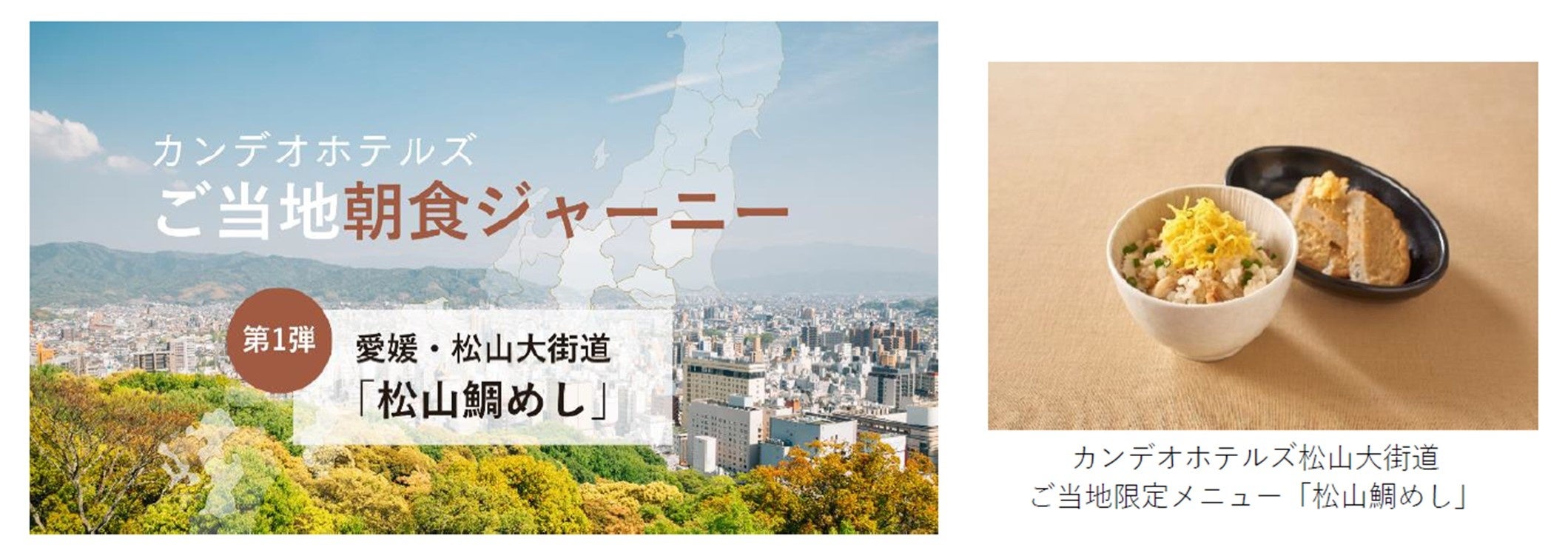 内 容:カンデオホテルズ松山大街道のご当地メニュー「松山鯛めし」を全施設の朝食で提供