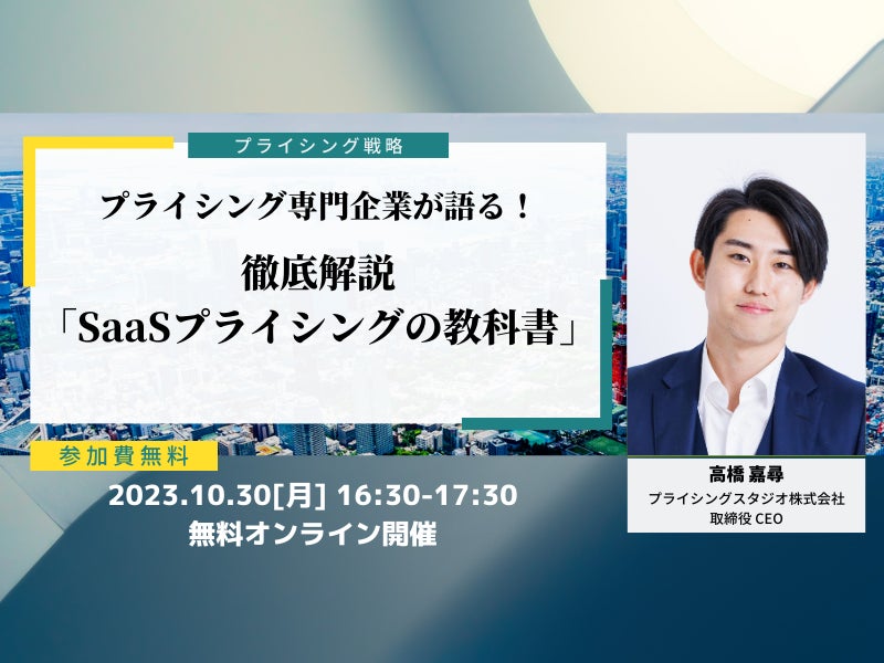 プライシングスタジオ株式会社|10月30日(月)16時30分~無料ウェビナー|徹底解説「SaaSプライシングの教科書」