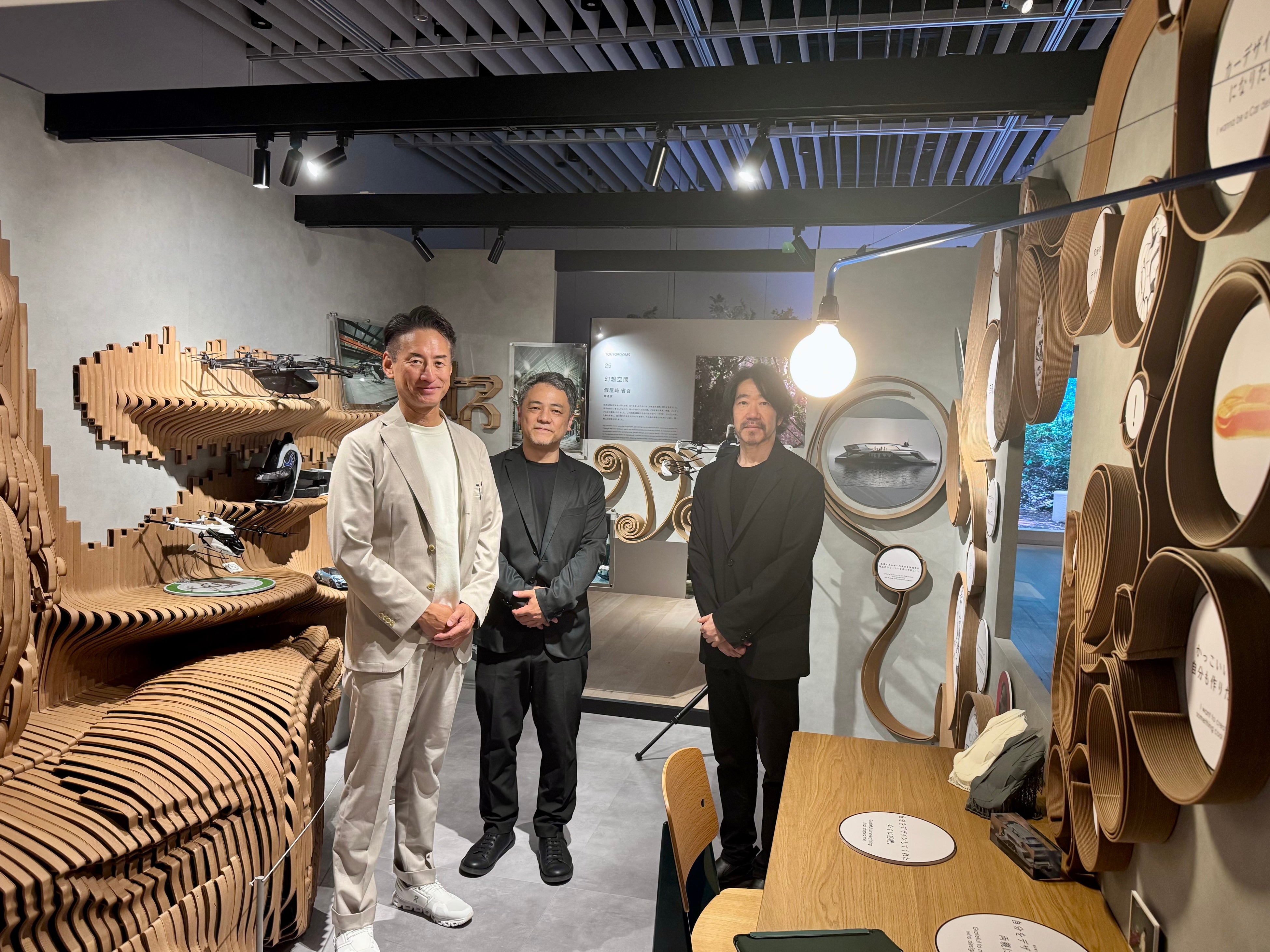 「TOKYOROOMS展参画のお話をいただいた時、壁面全体を大型3Dプリンターで出力し、ひらめきが2Dのスケッチとなり、そのスケッチが3Dの実物へと立ち上がっていくプロセスを表現できないかと模索していました。インテリア空間や他の家具と調和しながらも、自由な3D表現を可能にする素材。そんな素材を探していた中で、TABWD®(タブウッド)に出会いました。従来素材とは一線を画す質感と、自然木のような風合いに魅力を感じ、この素材こそ最適だと確信しました。今回の展示は、ExtraBold社の協力とTABWD®(タブウッド)なしでは実現できなかったと思います。」