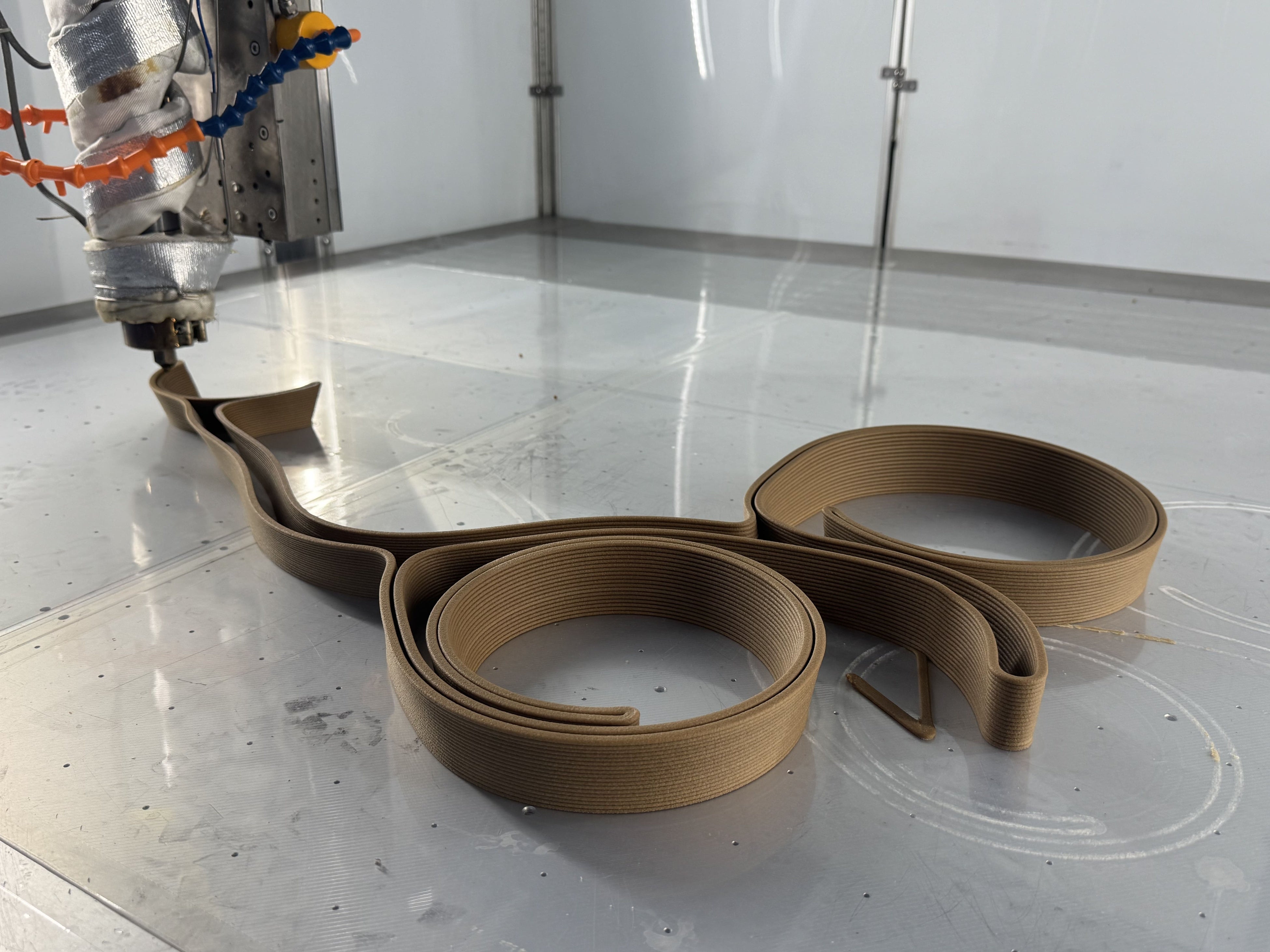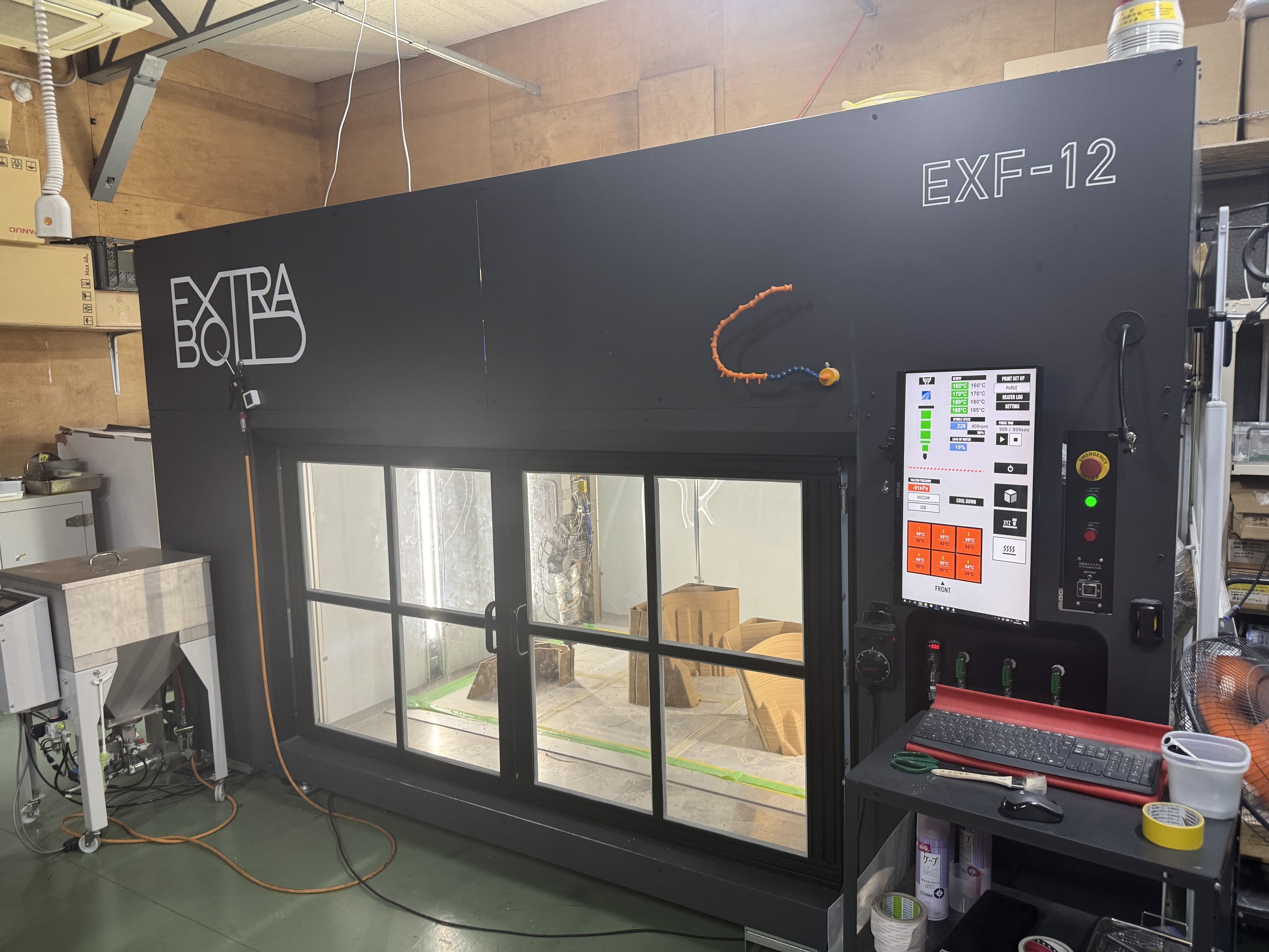 ExtraBoldの大型3Dプリンター「EXF-12」(造形エリア1700×1300×1000mm)および協働ロボット型3Dプリンター「REX-BUTLER」を用い、材料検証から本製作までを担当。展示会期に向けて、造形条件の最適化とプロセスを推進しました。