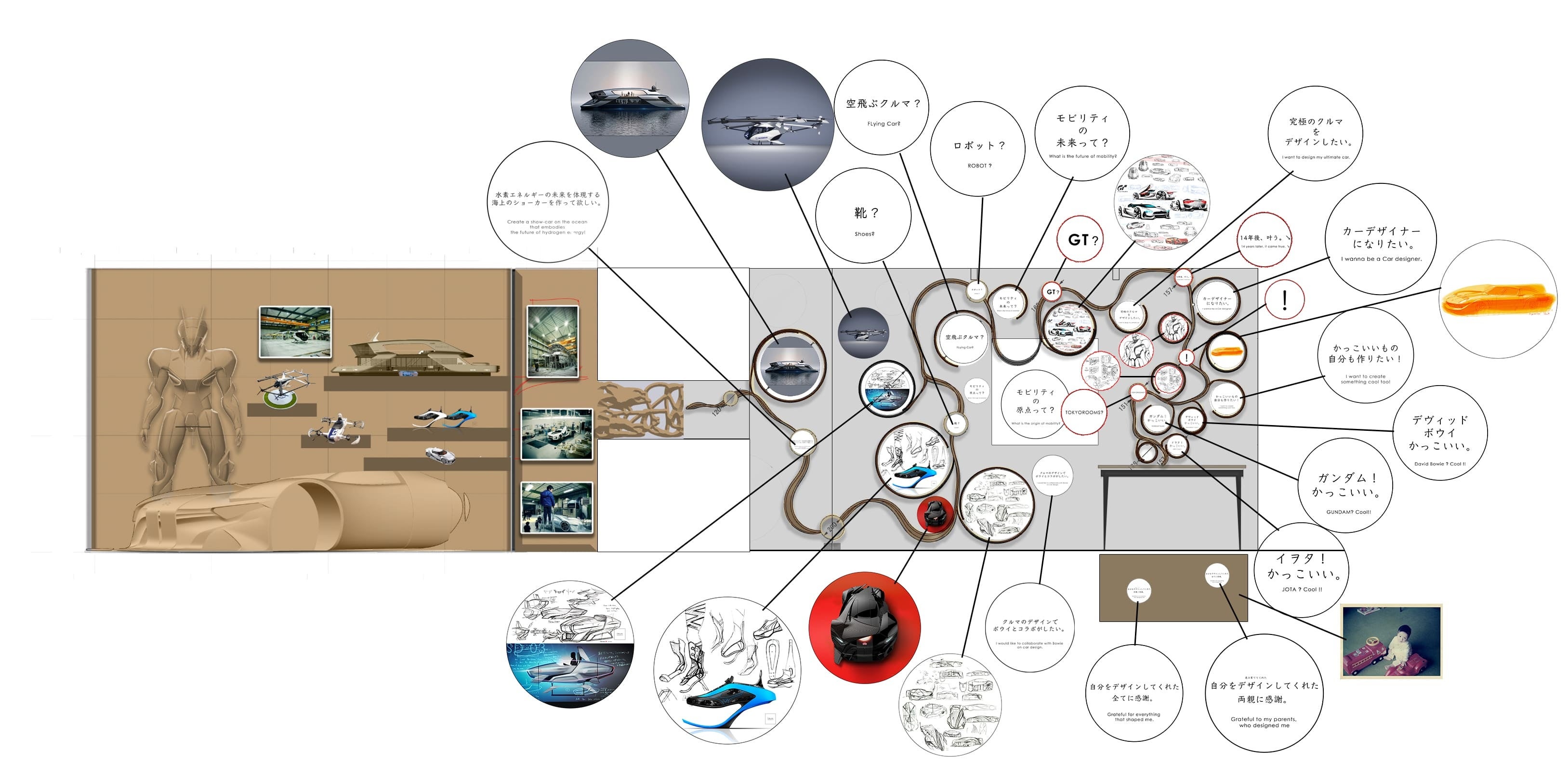 日英でカーデザインを学び、プジョー、シトロエンでデザイナーとして活動。その後ポリフォニー・デジタルでデザインディレクターとしてVisionGTなど企画デザインに従事。起業後、万博で公開された水素船、空飛ぶクルマ、モビリティスニーカーなど手掛ける。