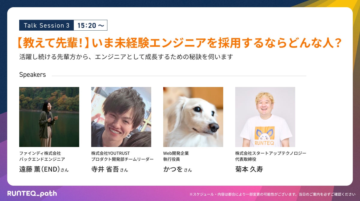 本カンファレンスだけでしか聞くことのできない貴重なRUNTQ_pathをぜひお楽しみください。