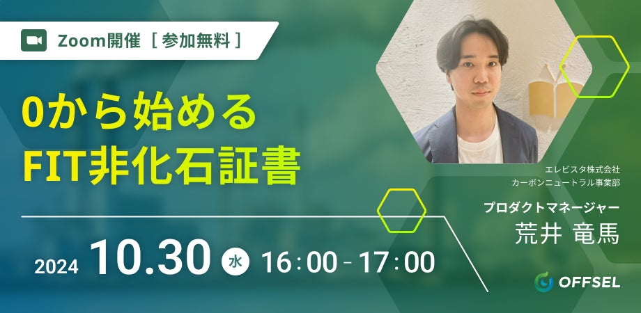 環境価値プラットフォーム「OFFSEL(オフセル)」などを展開するエレビスタ株式会社(本社:東京都中央区、代表取締役社長:石野拓弥、以下「エレビスタ」)は、10月30日(水) 16時からオンラインセミナー「0から始めるFIT非化石証書」を開催いたします。