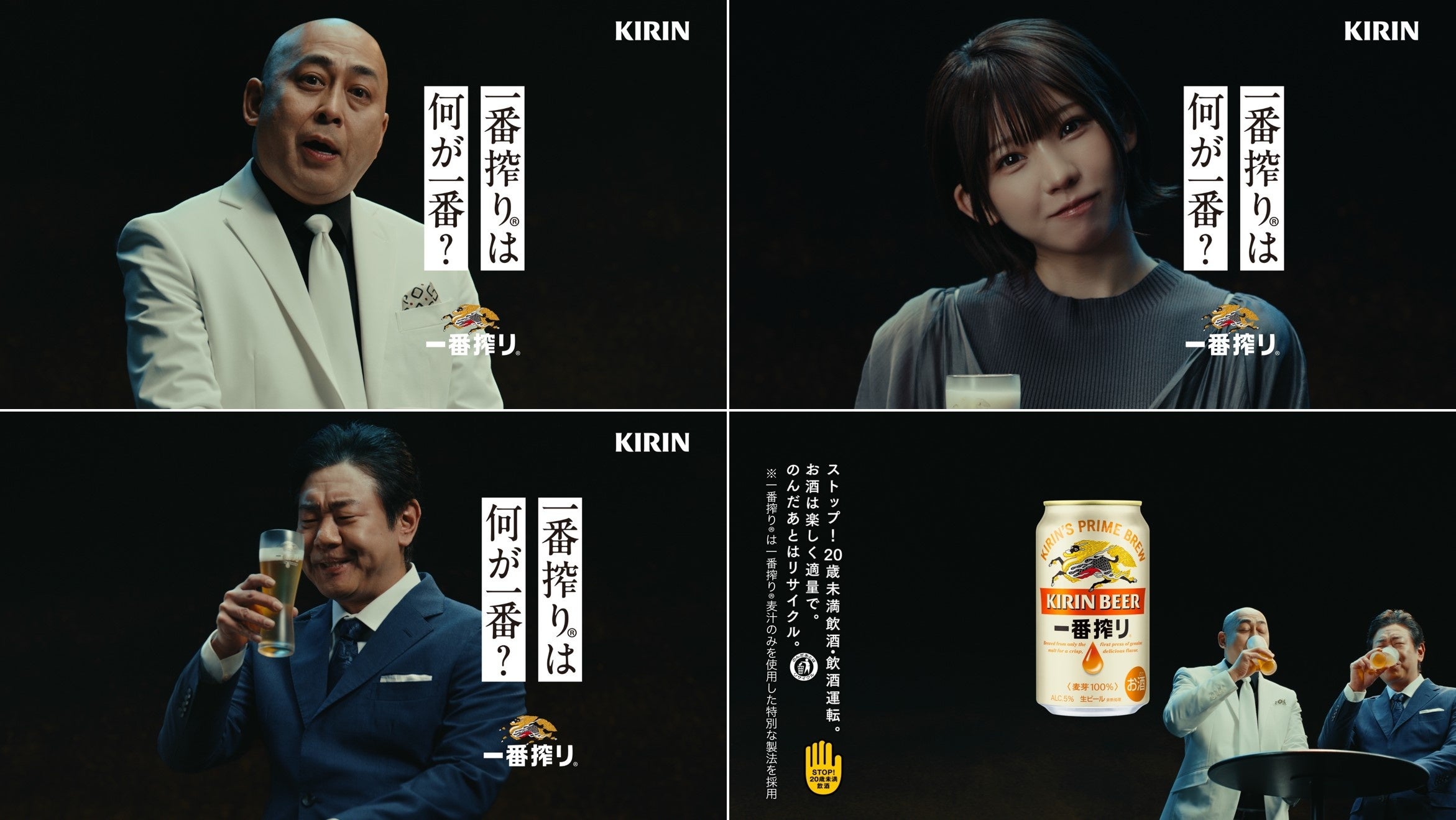 「一番搾り®」は、2024年2月より新たに中村倫也さんを主人公にさまざまな出会いをきっかけに「一番搾り®」の魅力を再発見していく、TVCMの放映を中心とした新コミュニケーションをスタートしました。今回は特にまだ「一番搾り®」の魅力を知らない方を中心に、錦鯉さんとえなこさんのリアルな言葉を通じて「一番搾り®」の魅力を知ってもらうWEB CMを開始します。