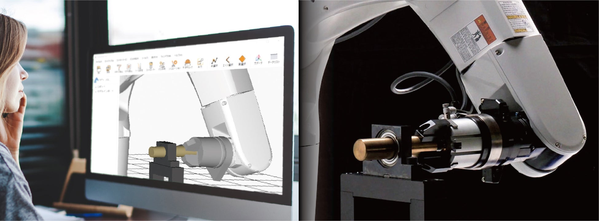 「オフラインティーチング」は通常のロボットティーチング作業とは異なり、3D CADのソフトを利用し、ソフトウェア上でロボットの軌道を作成して動作を覚えさせるティーチング方法です。3D CADのモデリングデータがある場合は、ティーチング作業の時間削減が期待できます。