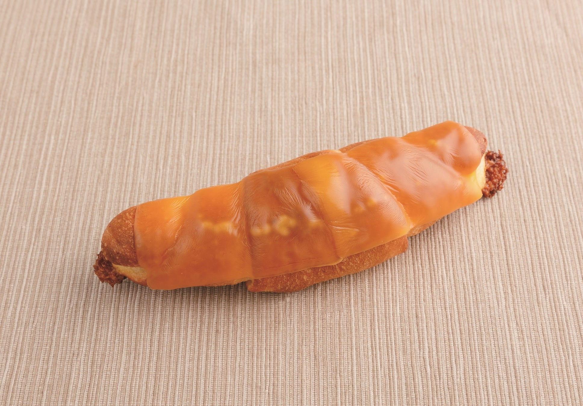 ゴーダチーズを巻き込んだ塩パンにスライスチーズをのせて