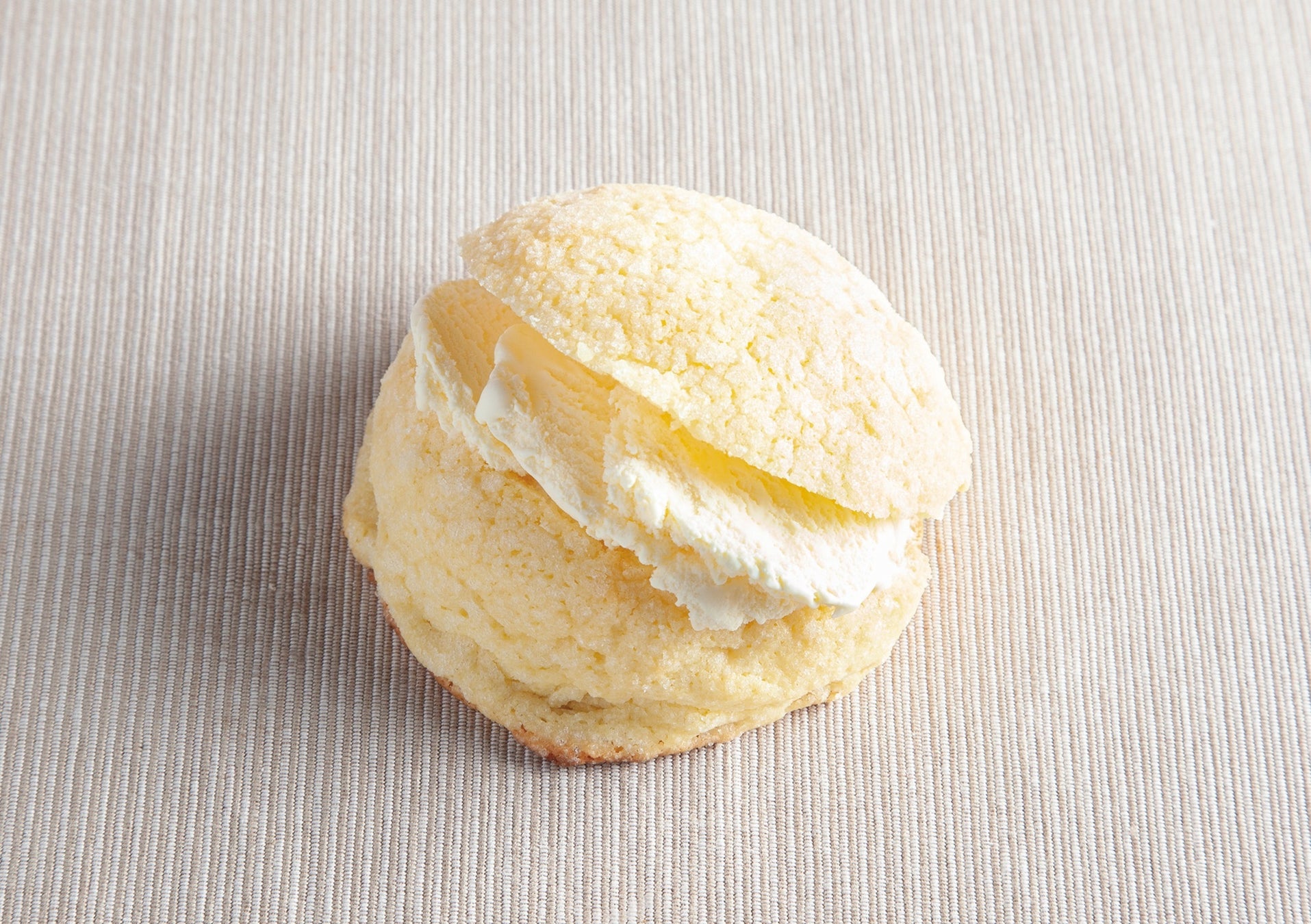 メロンパンにひんやり冷たいバニラアイスをサンド!