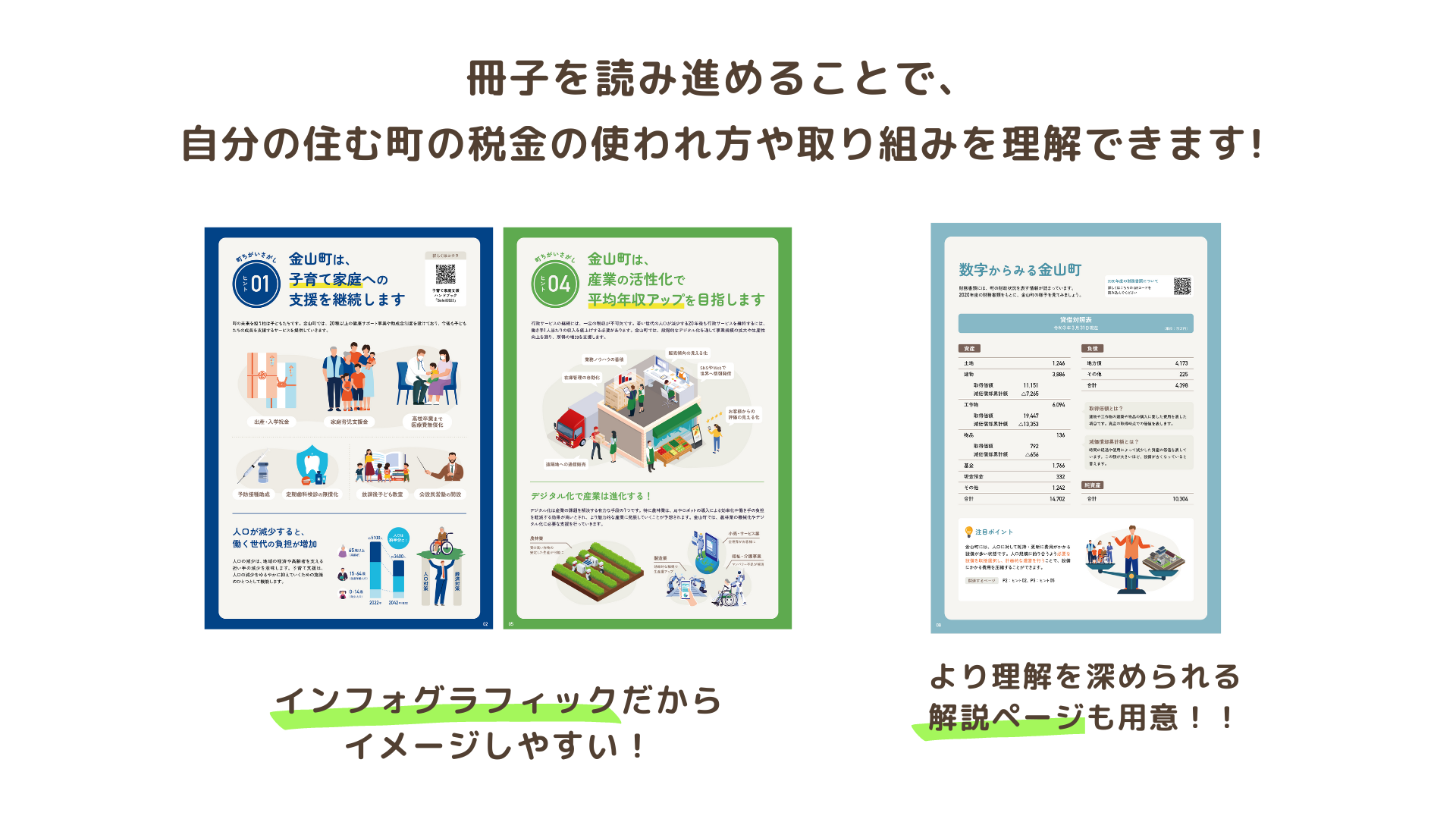 分かりにくい公会計をイラストなどで視覚的に表現し、町の財政を身近に感じることを目指すサービス『町ちがいさがし』を山形県金山町の協力を得て公開スタート