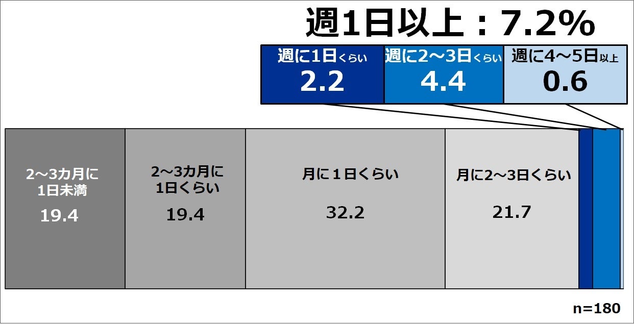 ・活動頻度:「週に1日以上」(「週に1日くらい」~「週に4~5日以上」の合計) 7.2%