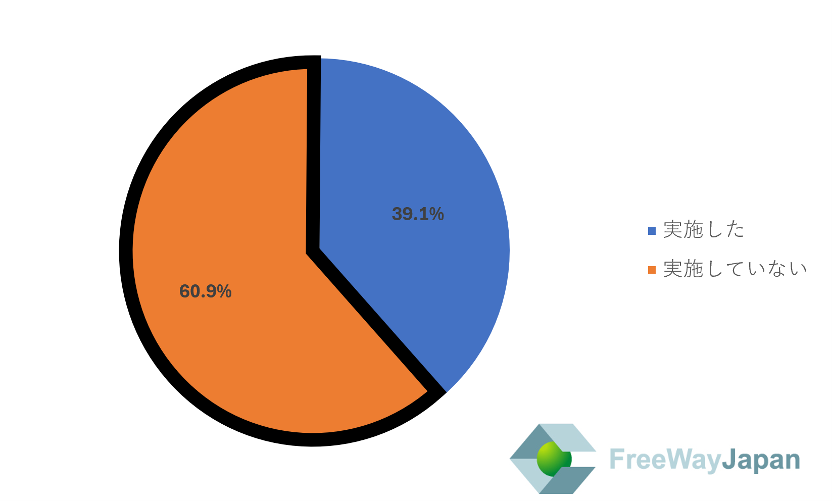 一方、冬のボーナスを「支給予定無し」と回答した代表取締役の方においては、「実施していない」が60.9%、「実施した」が39.1%という結果だった。