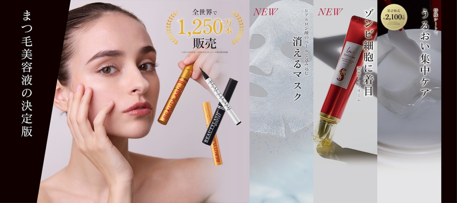 アイラッシュブースでは、2009年の発売以来愛され続けるまつ毛美容液『ビューティーラッシュ』をはじめ、ゾンビ細胞に着目した新商品の「Luxe アイクリーム」、累計販売数約2000万個*の「スパトリートメントiシート」シリーズなどアイケアに特化した厳選商品をご案内いたします。