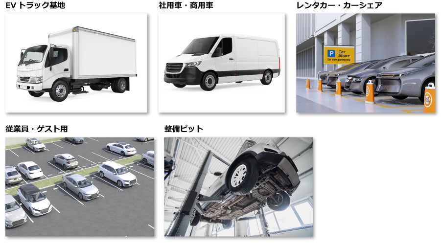 物流基地では、地面にケーブルが横切ると作業の妨げになり、場合によっては危険の原因になります。「見せない普通充電器」は、車止めの至近に設置したり、高所から吊り下げたりできますので、工夫次第で安全なケーブルレイアウトを実現できます。 -