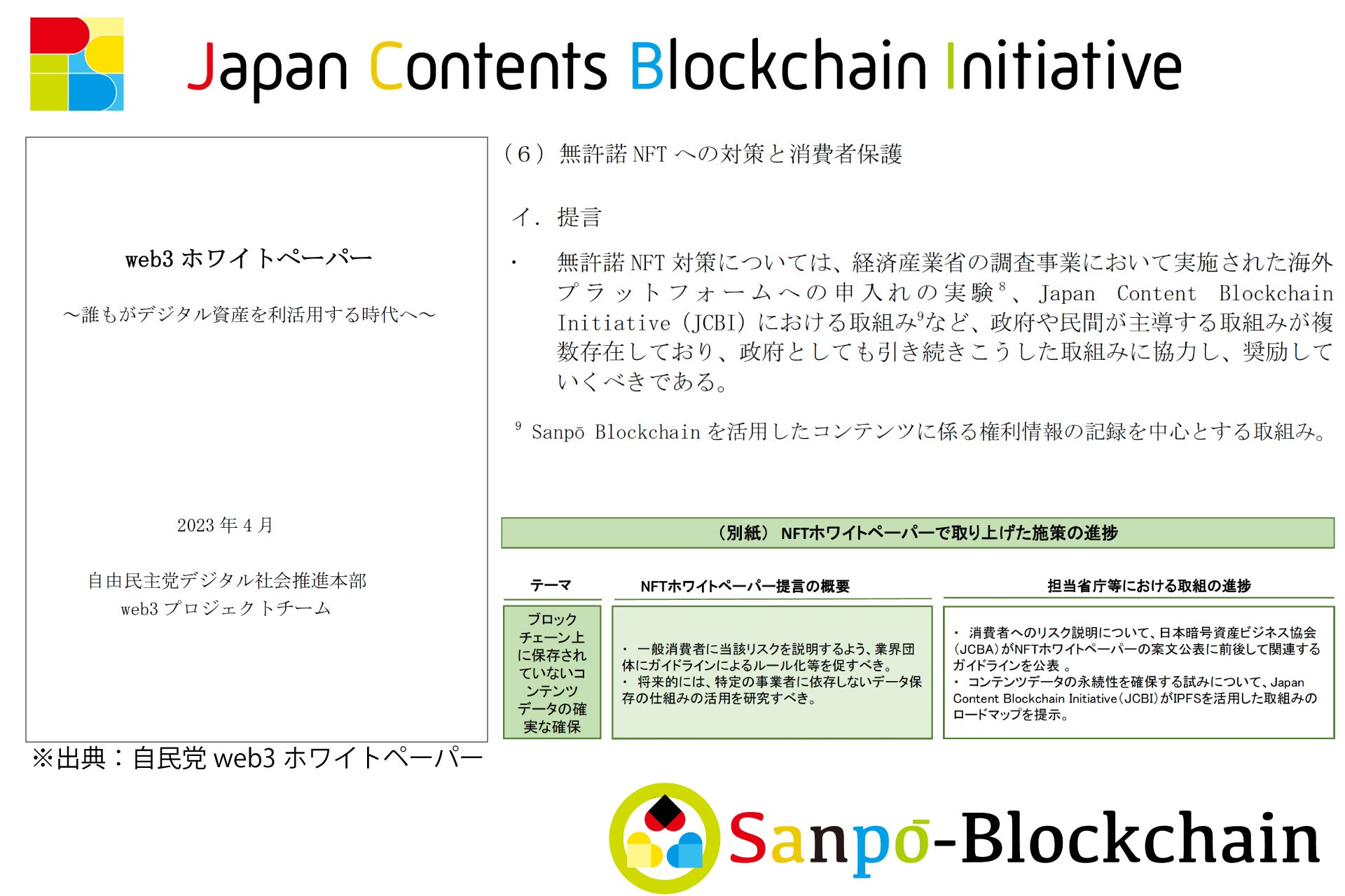 自民党web3ホワイトペーパーに取り上げられたSanpō-Blockchainを活用したコンテンツに係る権利情報の記録を中心とする取組み資料を公表