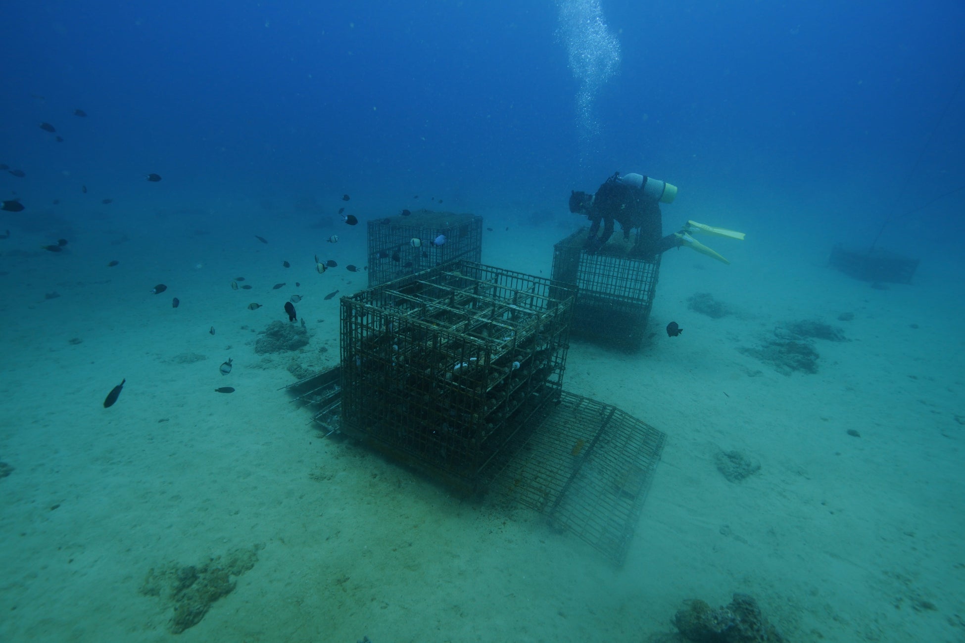 これから約半年間、この自然豊かで美しい奄美の海の中でゆっくり熟成され、美味しいワインへと成長します。また、ワインセラーには藻場が再生し、魚礁として多様な海中生物が付着・生息していきます。