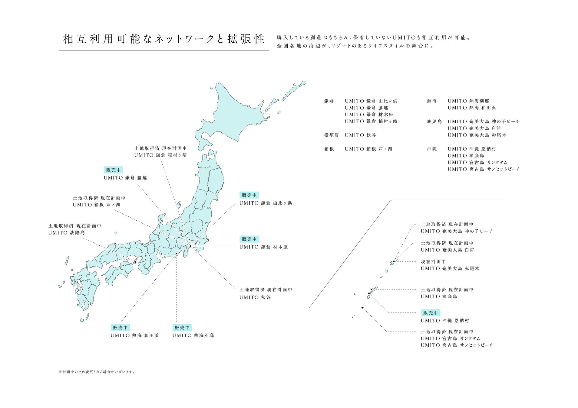 沖縄、鎌倉、熱海、瀬底島、宮古島、奄美大島など日本全国に海を最前列で感じられるホテルにも別荘にもなる別邸をぞくぞくと展開しています。