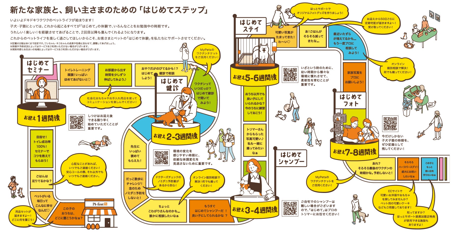 さらに、各サービス提供後にお渡しするステッカーを全て集めた方には、当グループ限定グッズをプレゼントするほか、ペットの成長段階に合わせたサービスをすごろく式にご提案するなど、これまでにない楽しめる仕組みを整えています。