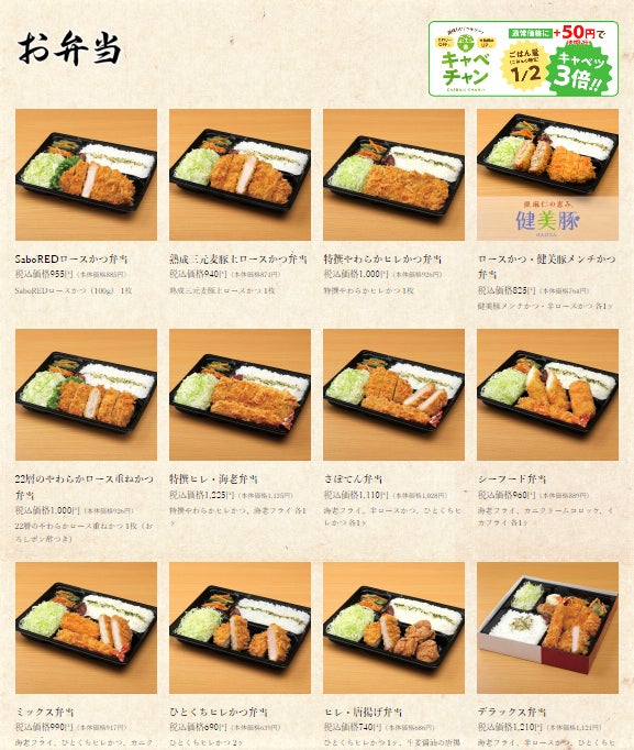 ◇対象商品:SaboREDロースかつ弁当、熟成三元麦豚ロースかつ弁当、特撰やわらかヒレかつ弁当、さぼてん弁当、シーフード弁当、ミックス弁当など、「お弁当」カテゴリーの商品(※)