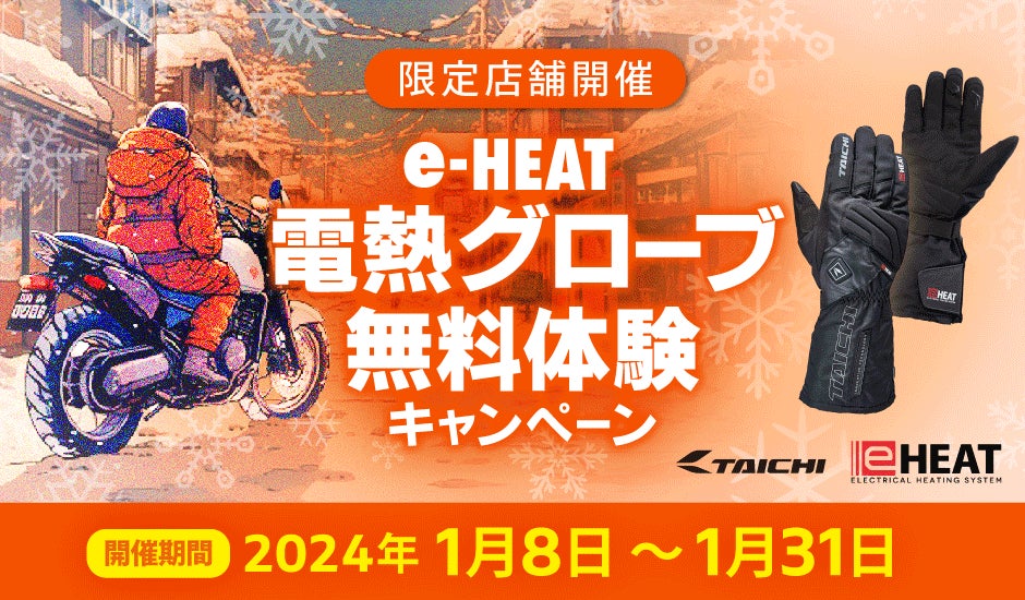 2024年1月8日~31日まで、店舗限定でタイチ製電熱グローブ(e-HEAT)の無料貸出キャンペーンを実施!
