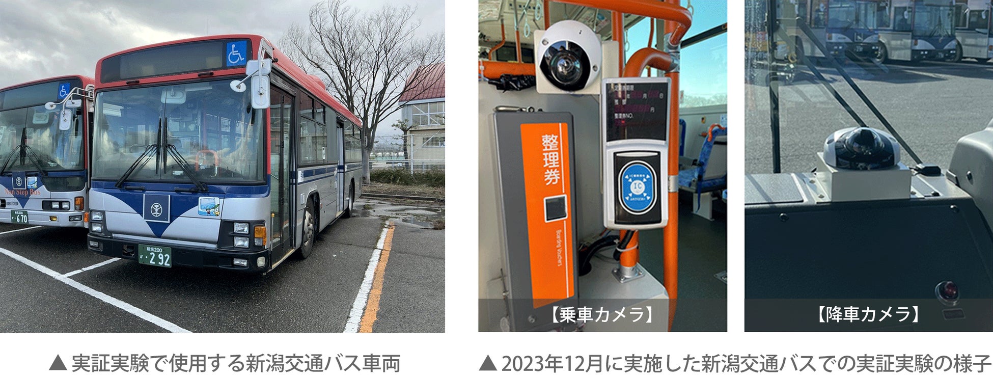 2024年12月11日に新潟市産業振興センター「5Gビジネスラボ」にて事前テストを行い、翌日12月12日から22日までの11日間、新潟市内を運行する一部路線バス車内にAIカメラを設置し、バスの利用情報を取得します。