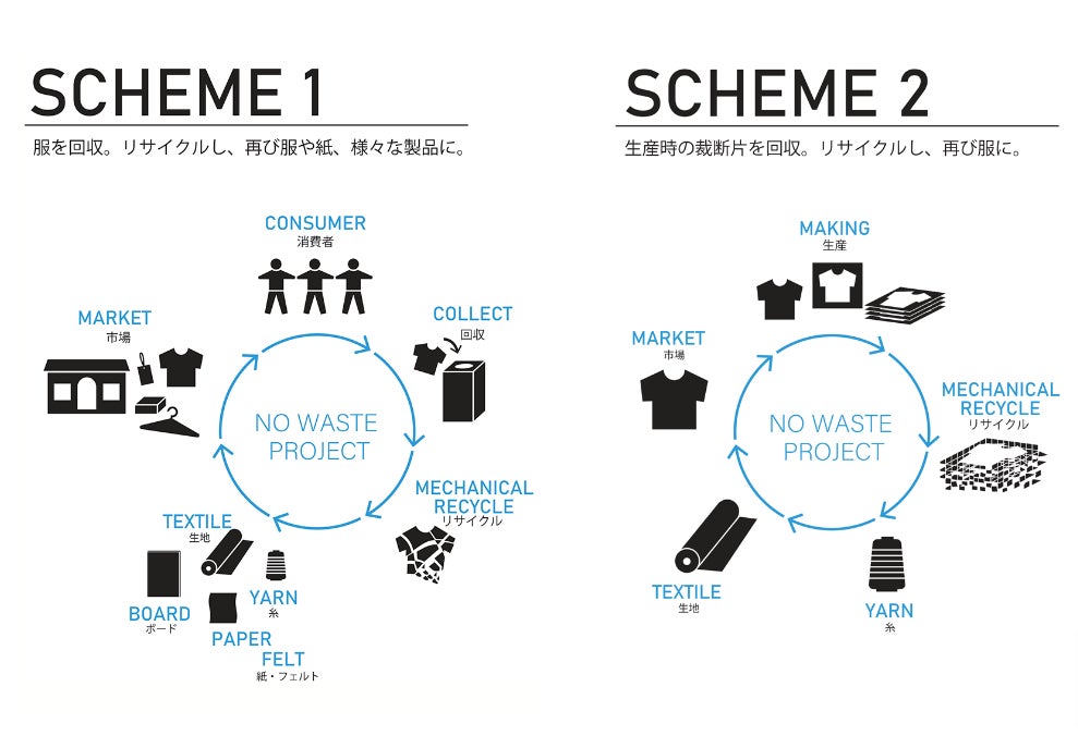 当社は、アパレル製品の川上から川下まで一貫したものづくりの担い手として、ファッションにおけるサステナビリティの実現に取り組んでおり、その一環として裁断くずや古着を回収して糸や生地、製品に生まれ変わらせる素材循環スキーム「NO WASTE PROJECT」を展開しております。「NO WASTE PROJECT」の「全て無駄にしない」というコンセプトに、プリントオンデマンドによる小ロット生産で環境負荷軽減に貢献してきたキンコーズが共感し、今回の共創プロジェクトが実現しました。